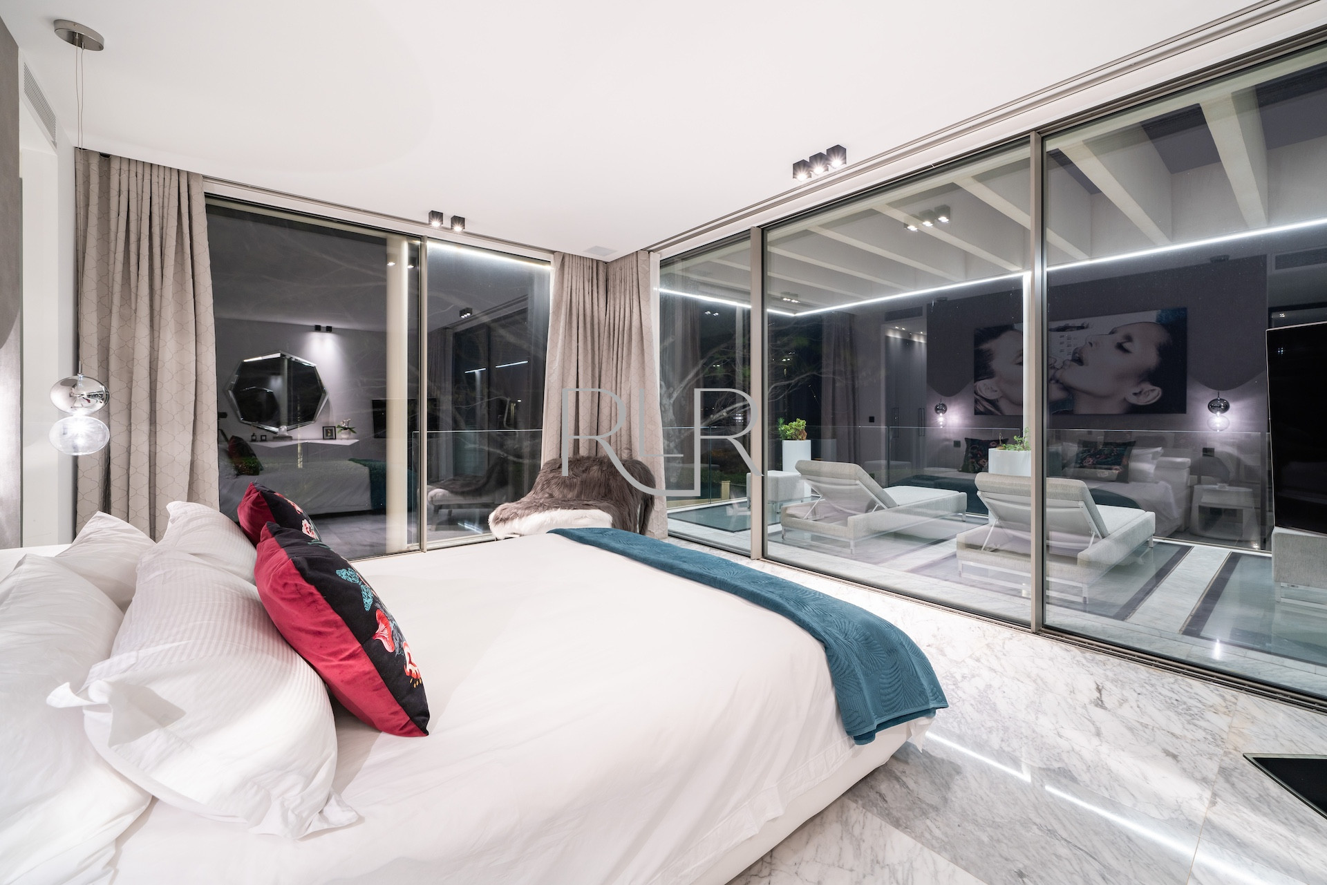 6 somptueuses suites, réparties sur différents niveaux pour garantir intimité et confort à chaque hôte (desservies par un ascenseur)