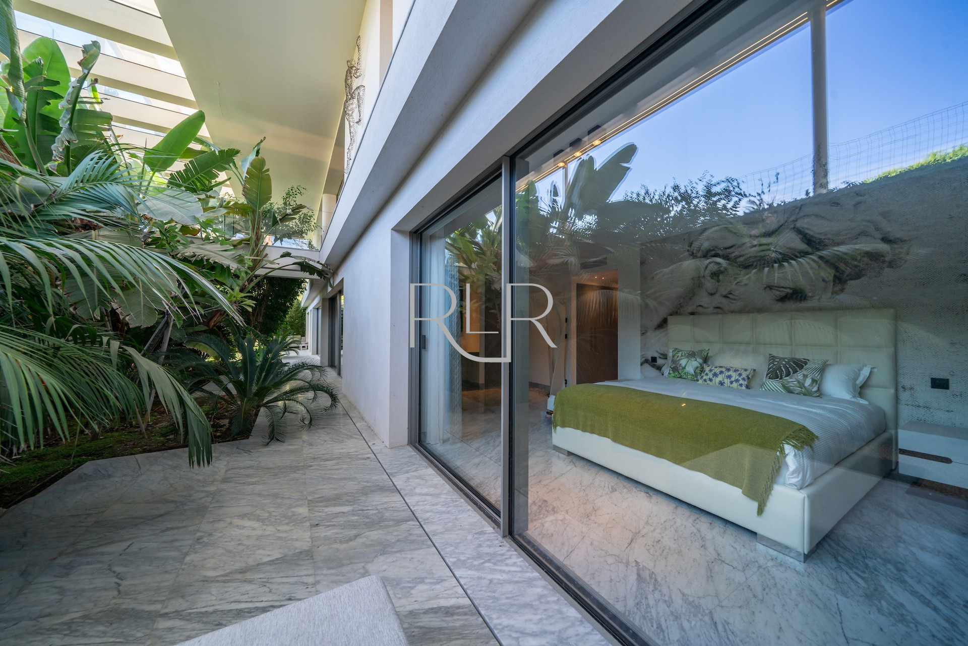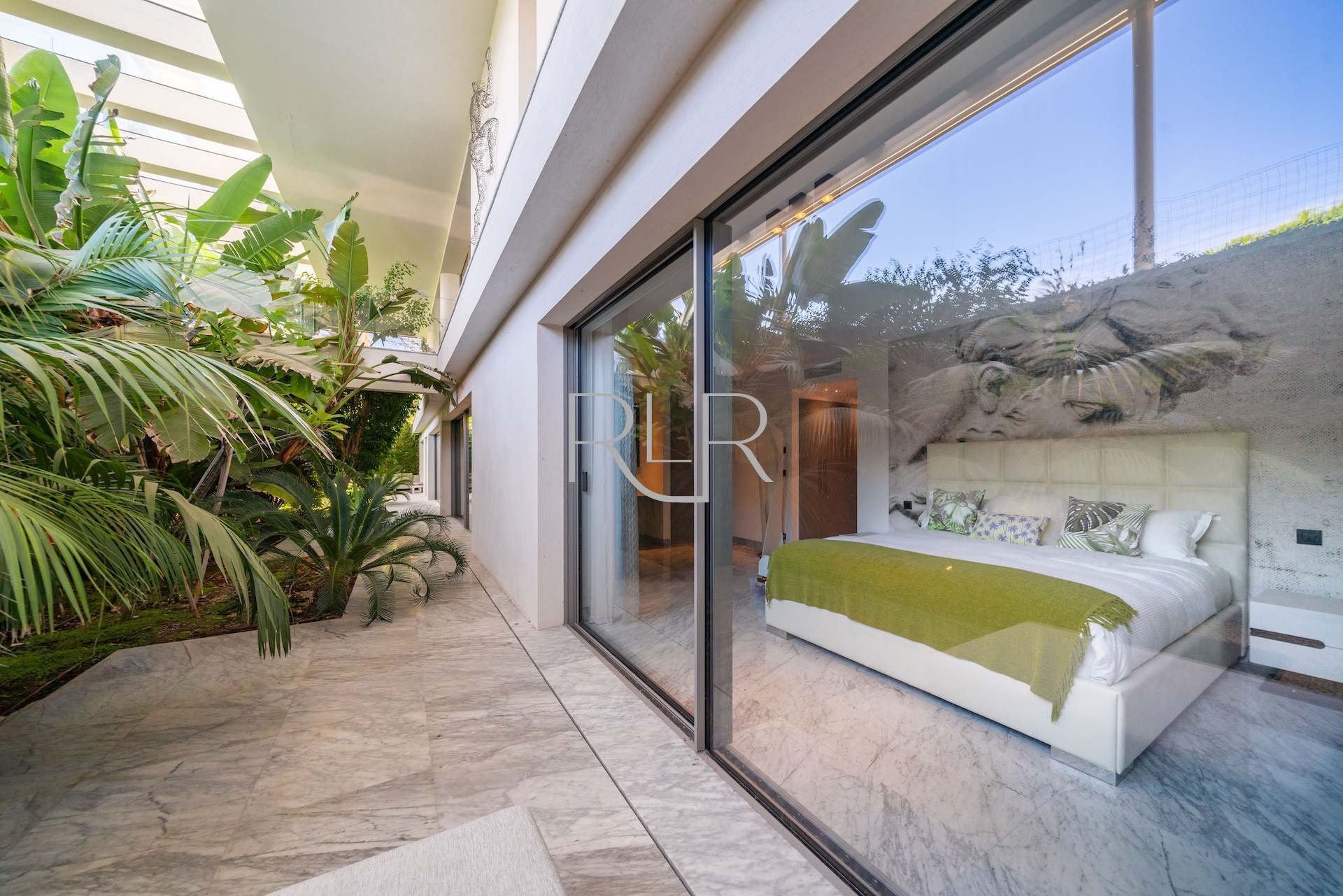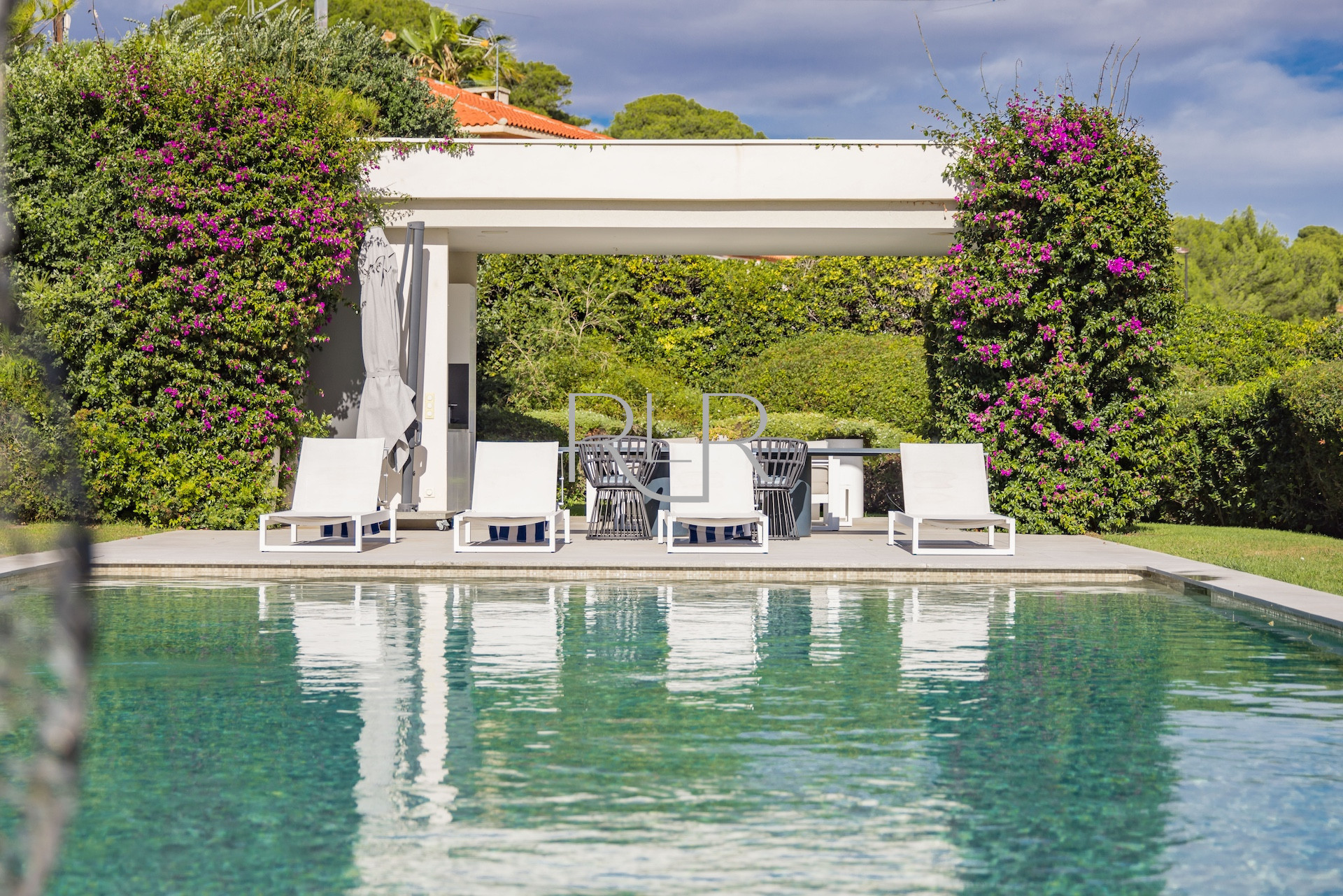 Nichée dans un jardin luxuriant de 3000 m² aux inspirations tropicales, principalement plat, cette villa propose un vaste espace extérieur avec une grande piscine, un pool house élégant, et une atmosphère de sérénité absolue.