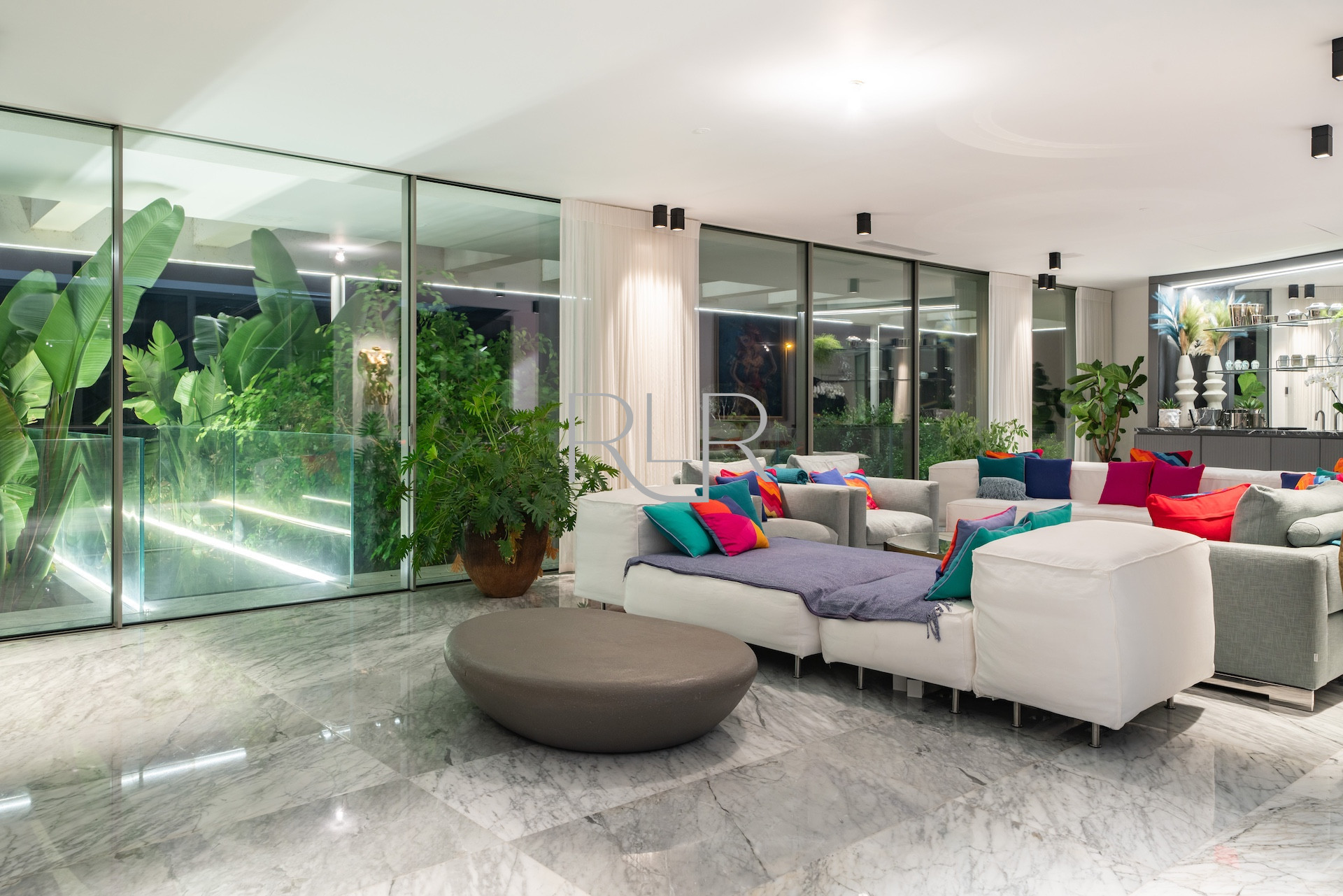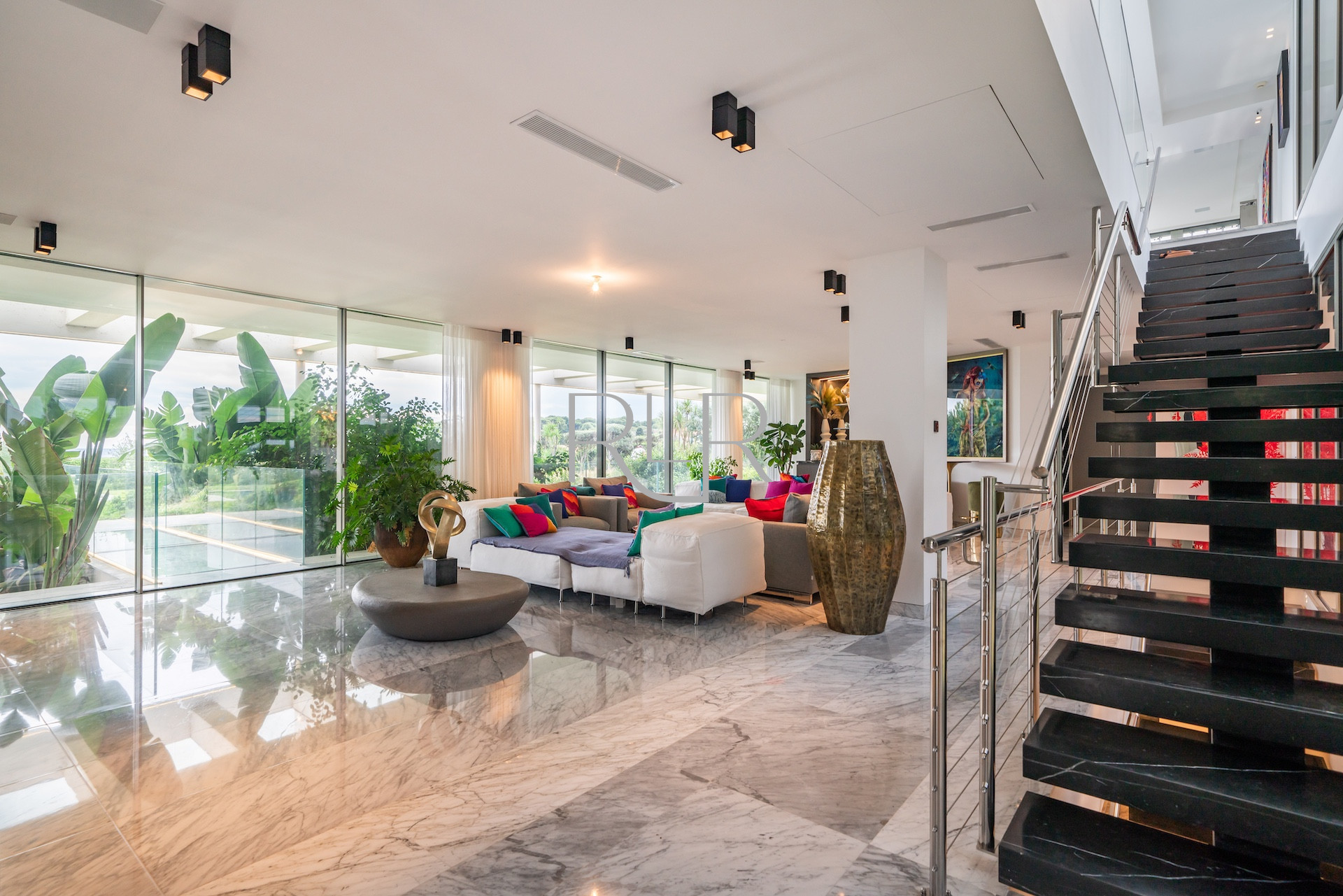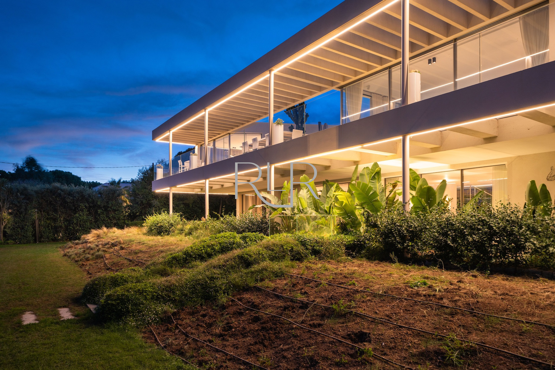 Nichée dans un jardin luxuriant de 3000 m² aux inspirations tropicales, principalement plat, cette villa propose un vaste espace extérieur avec une grande piscine, un pool house élégant, et une atmosphère de sérénité absolue.