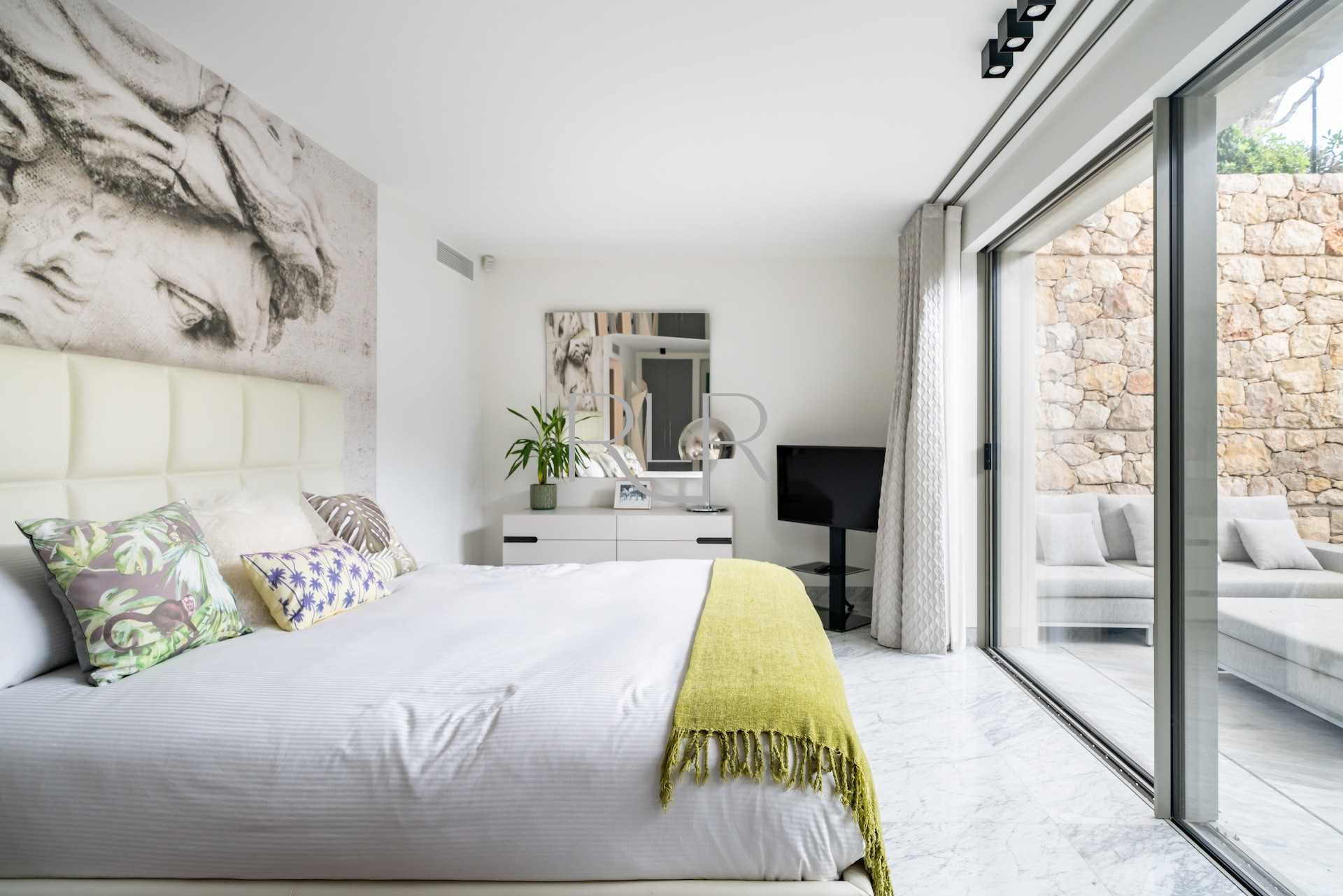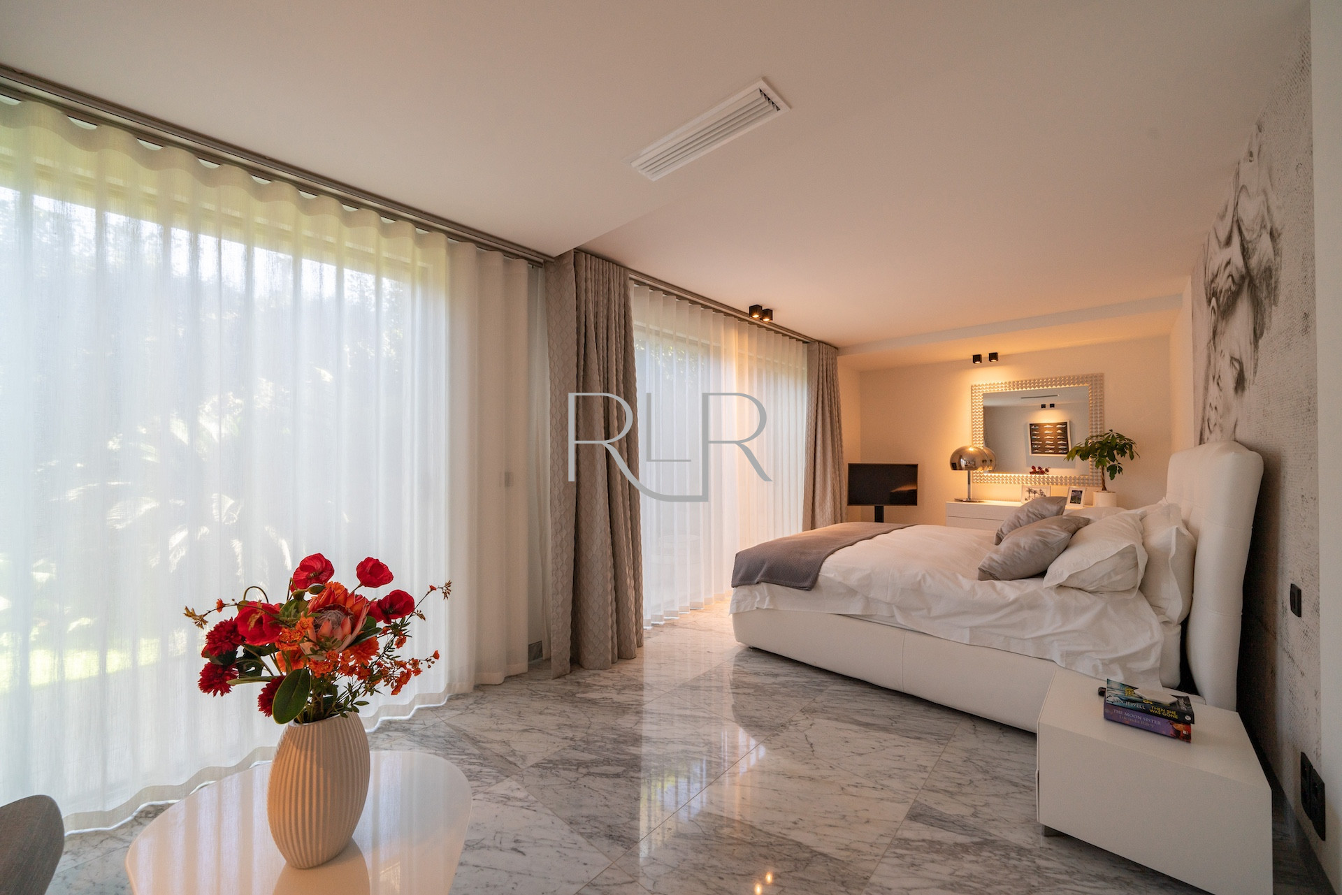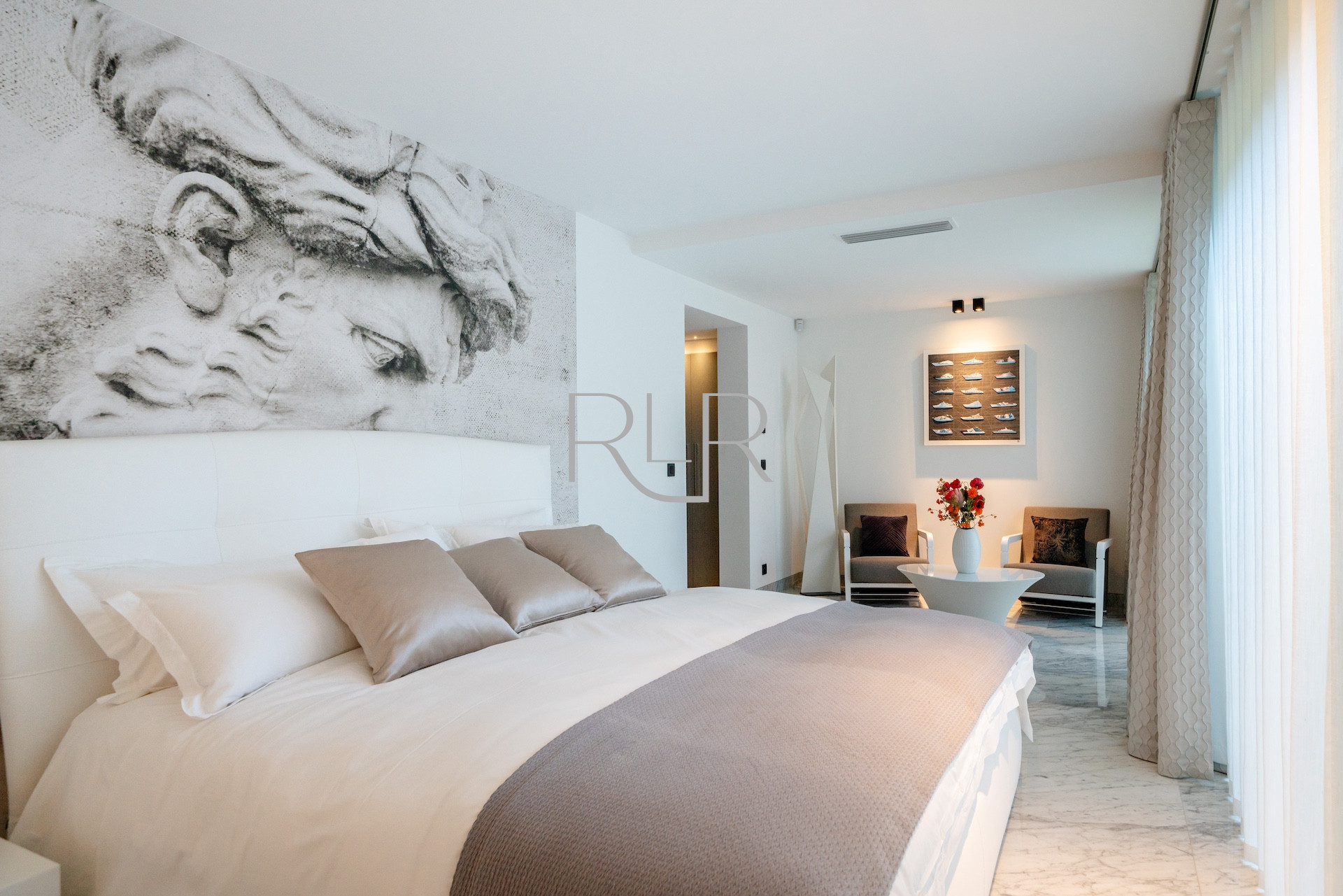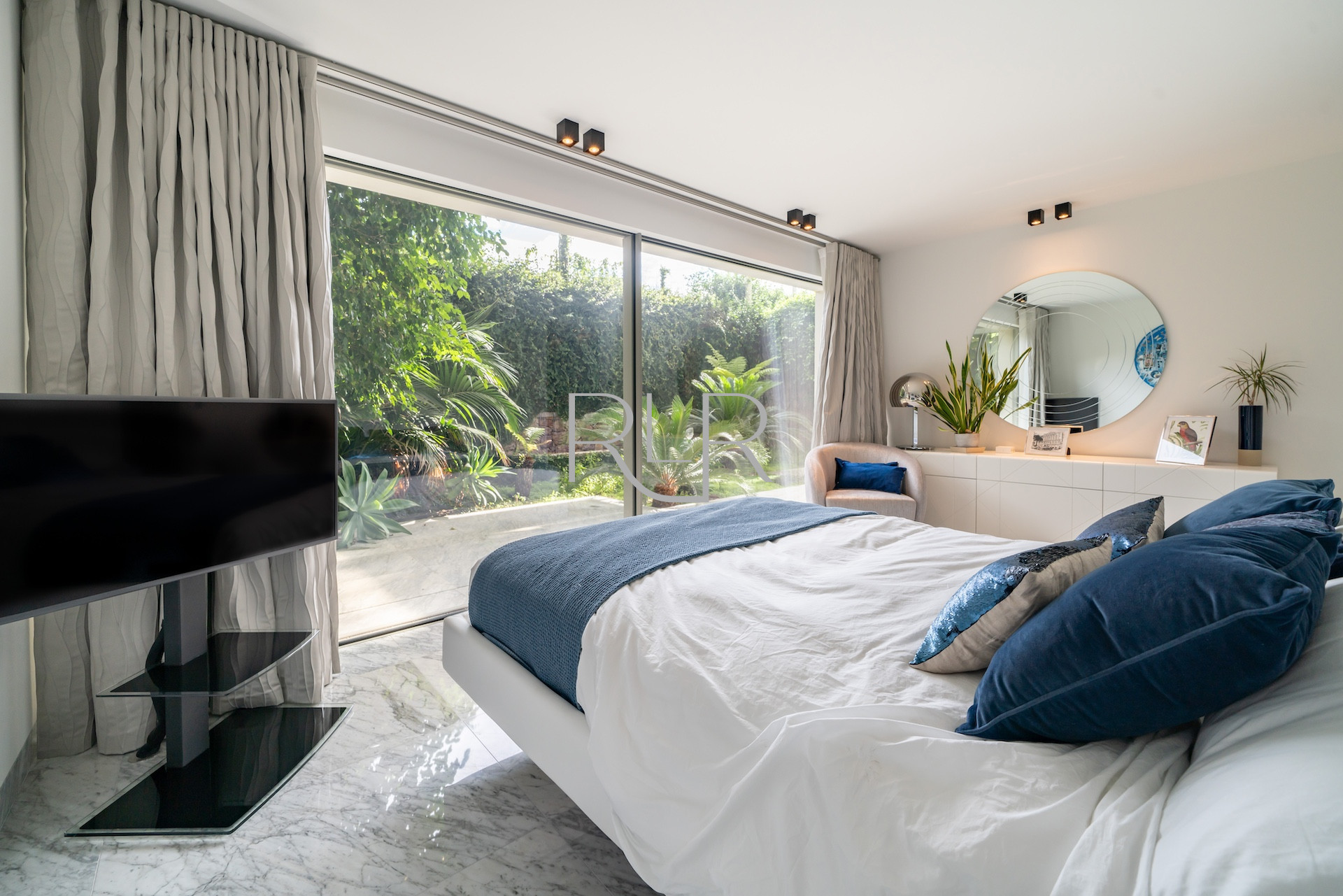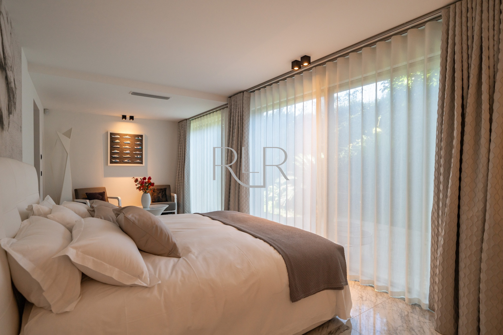 Trois des chambres, situées dans la maison principale, ont été entièrement rénovées, avec une attention particulière portée aux finitions et à la vue depuis chaque pièce. Une quatrième chambre indépendante, avec entrée séparée, bénéficie d’un accès direct sur le jardin et offre également une belle vue. Enfin, deux chambres supplémentaires sont situées en annexe au niveau inférieur du jardin, idéales pour du personnel ou des adolescents.