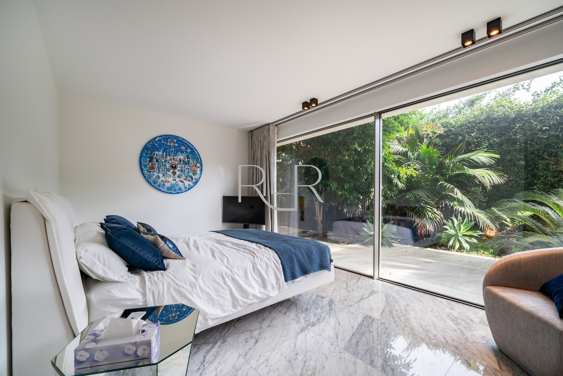 Pouvant accueillir jusqu’à 10 invités, la villa dispose de 5 chambres en suite ainsi que d’un appartement pour le personnel. Elle est nichée dans un vaste jardin plat, véritable oasis de tranquillité, avec une piscine au chlore (10x4m) entourée de verdure.
