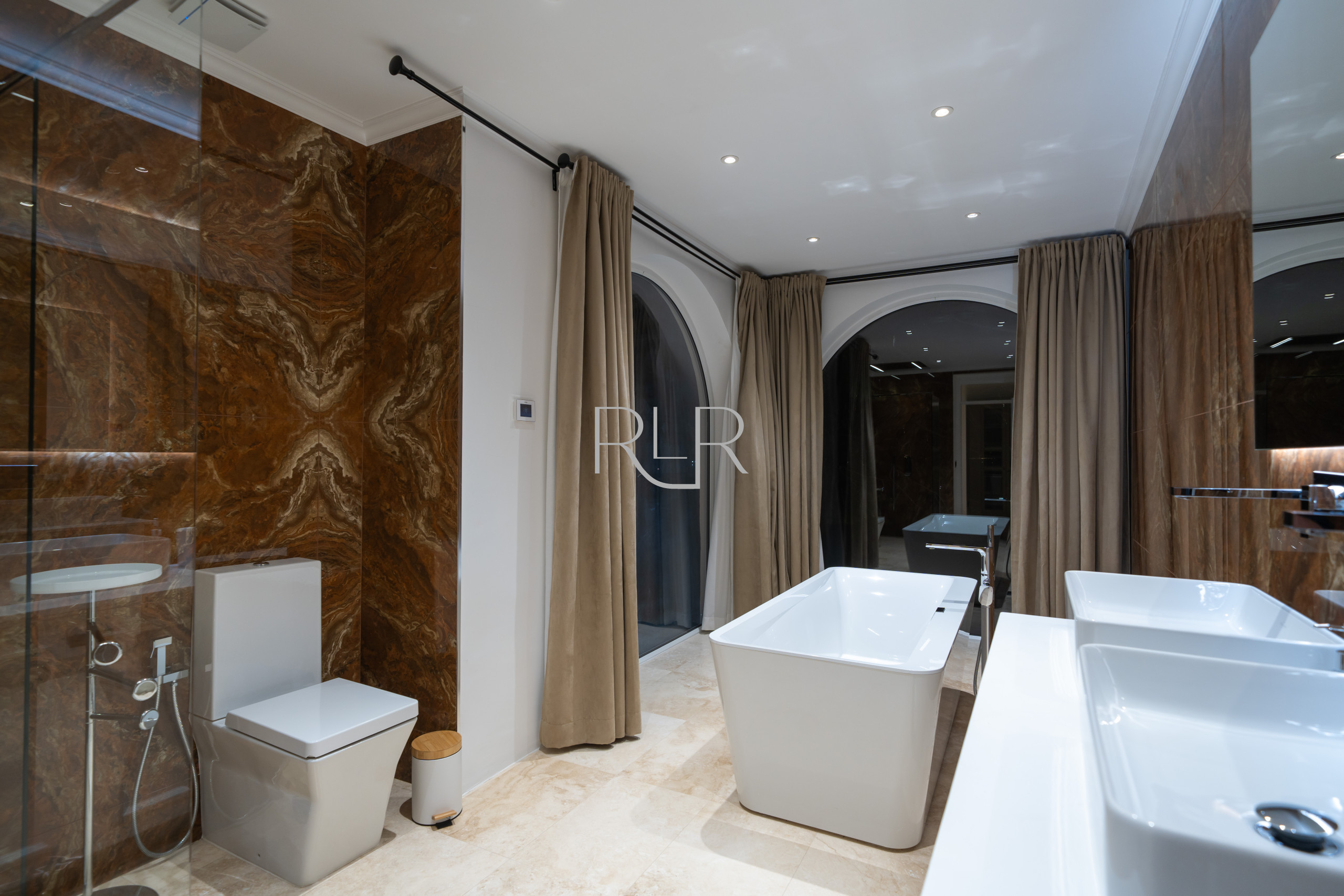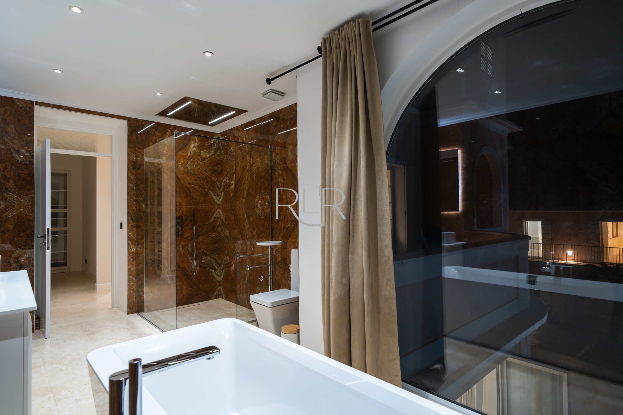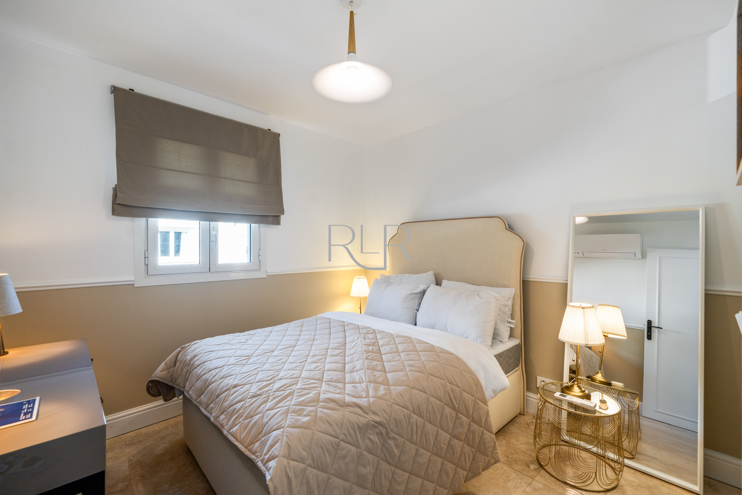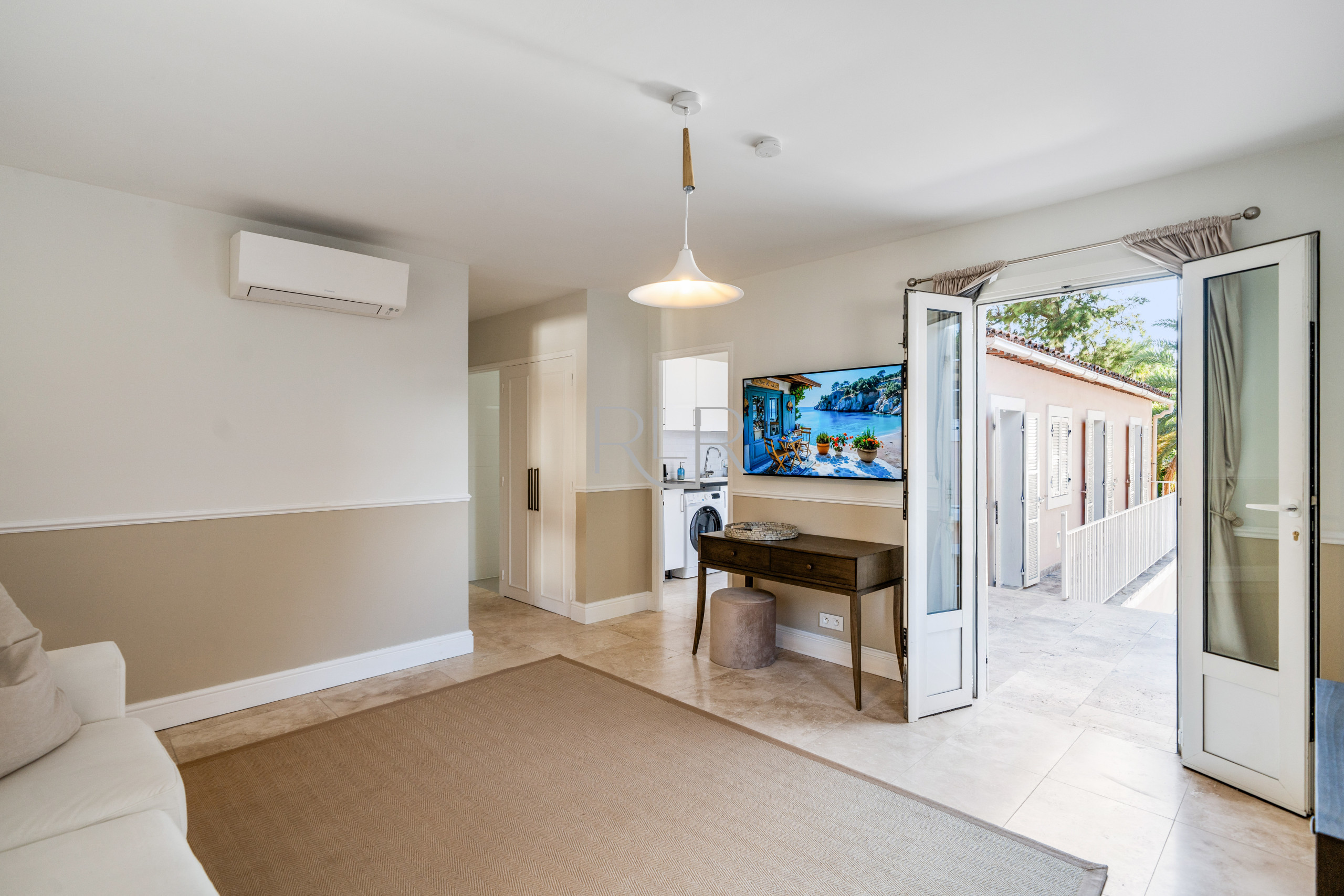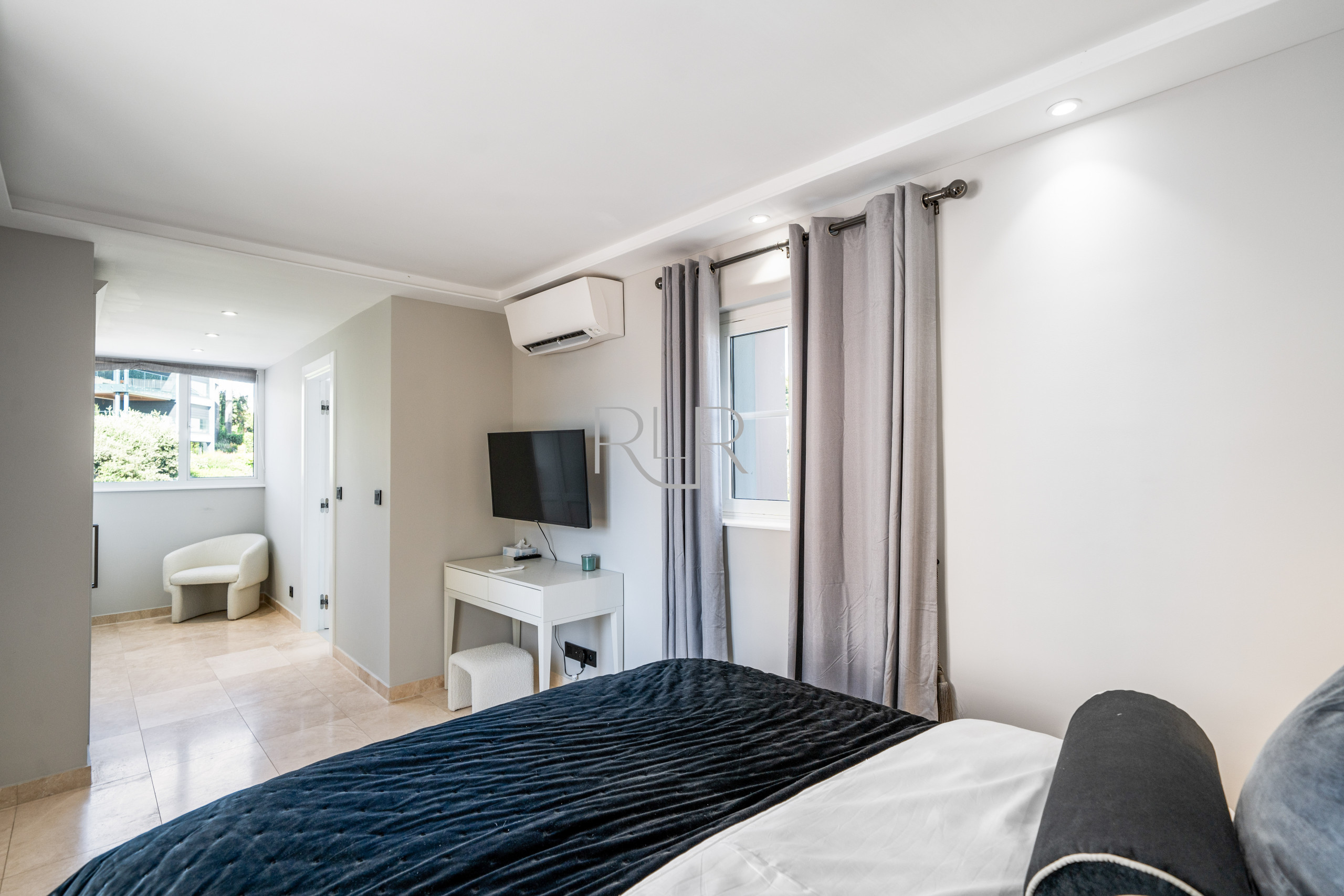 Elle dispose de climatisation dans tout le logement, piscine privée, piscine chauffée privée, garage même bâtiment.