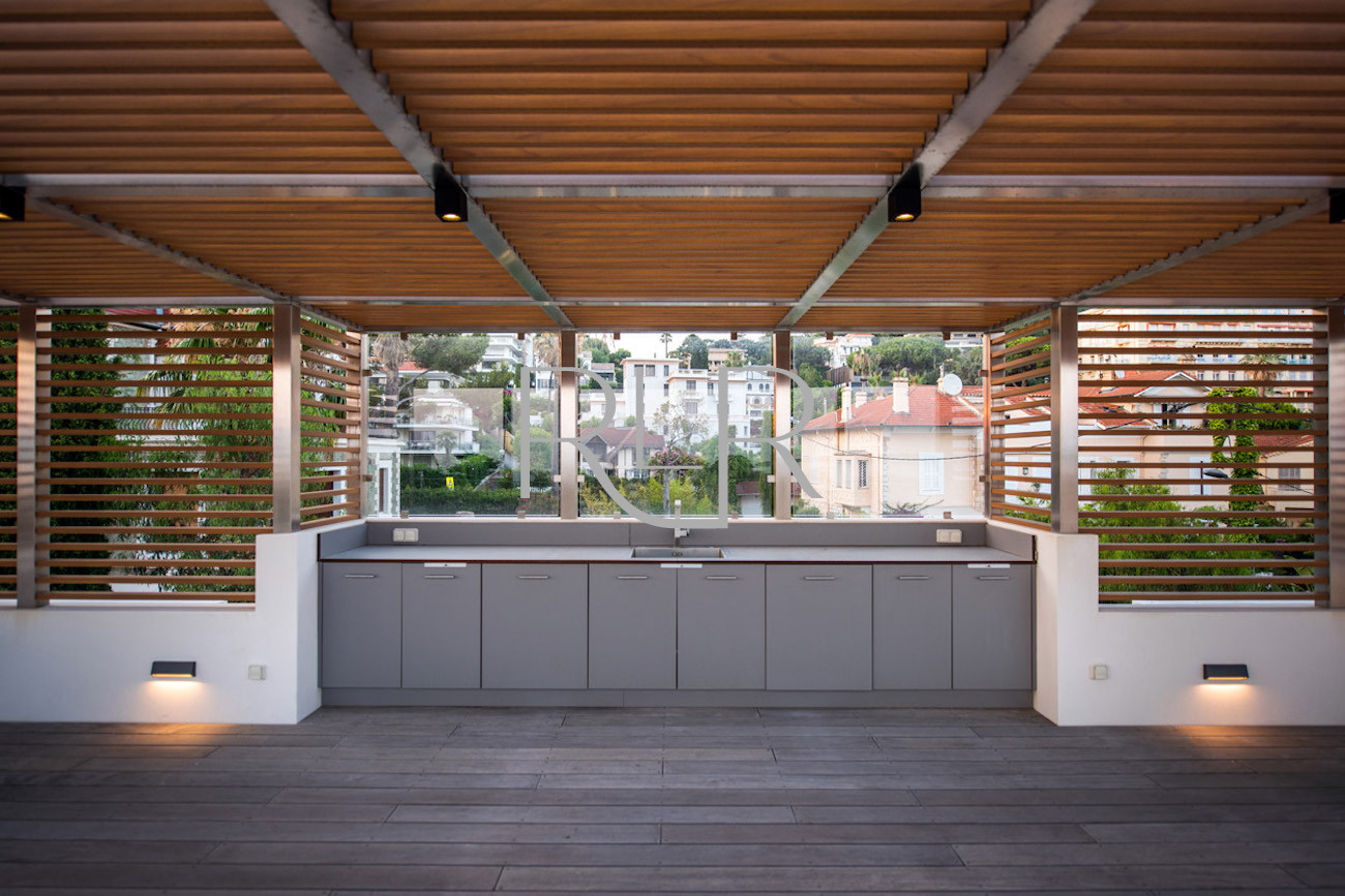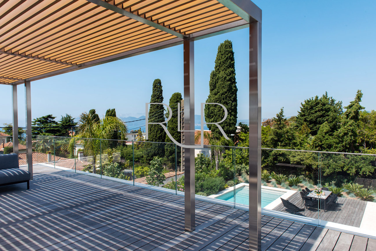 Profitez d’un magnifique rooftop pour admirer le coucher de soleil sur la mer, tandis que les vastes pièces à vivre baignées de lumière s’ouvrent sur la piscine chauffée (12x4 m) et les jardins soigneusement entretenus.