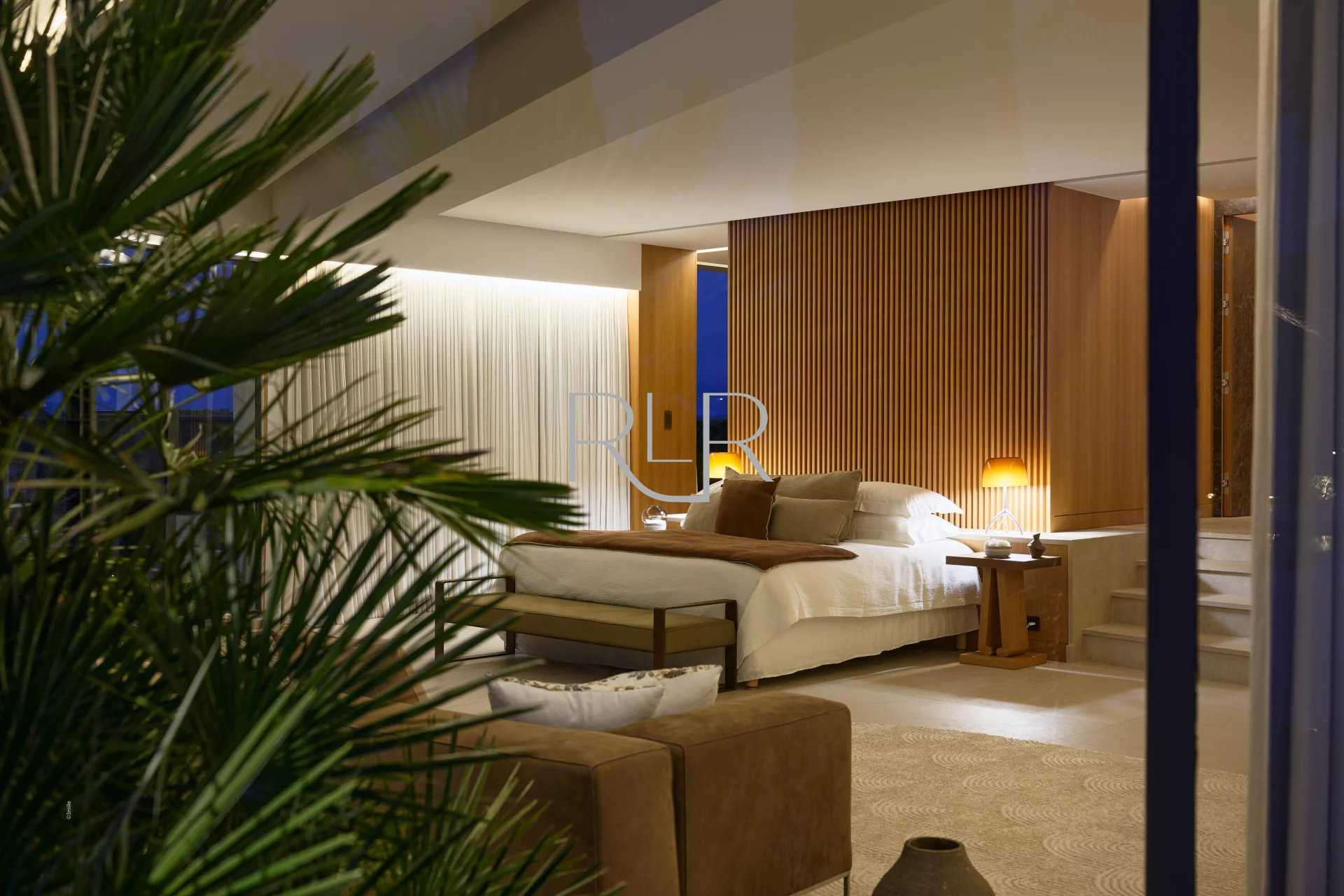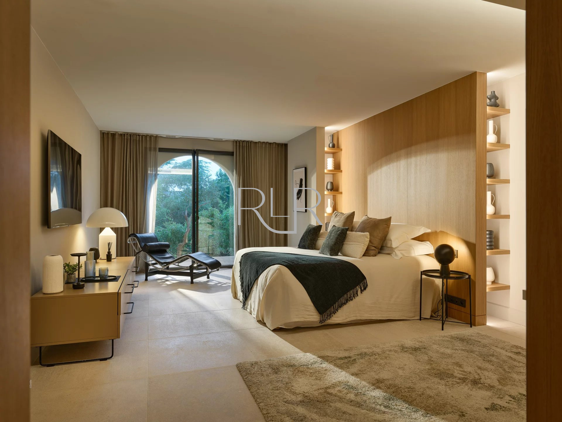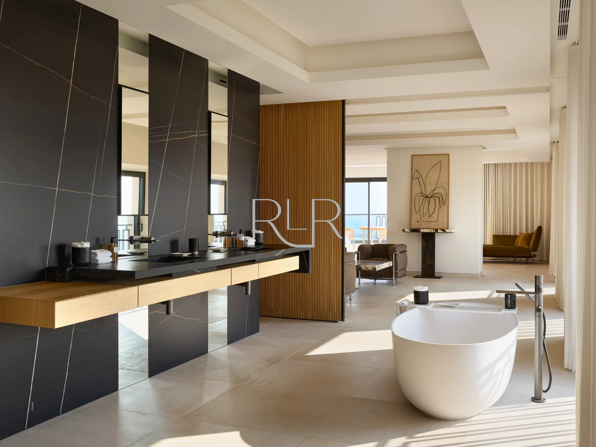 Chambre 9 avec lit king size, balcons privés, dressings et salle de douche attenante.
