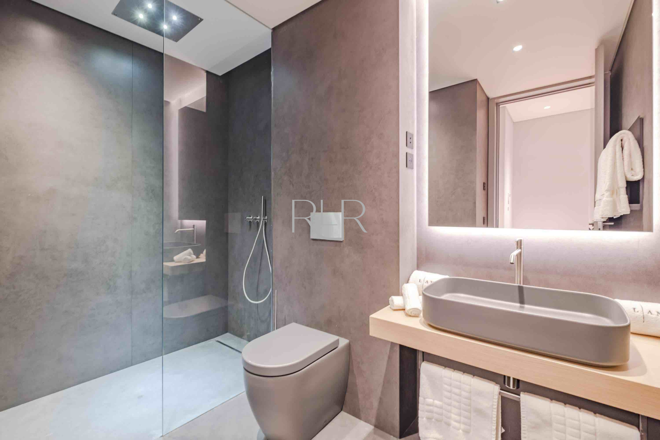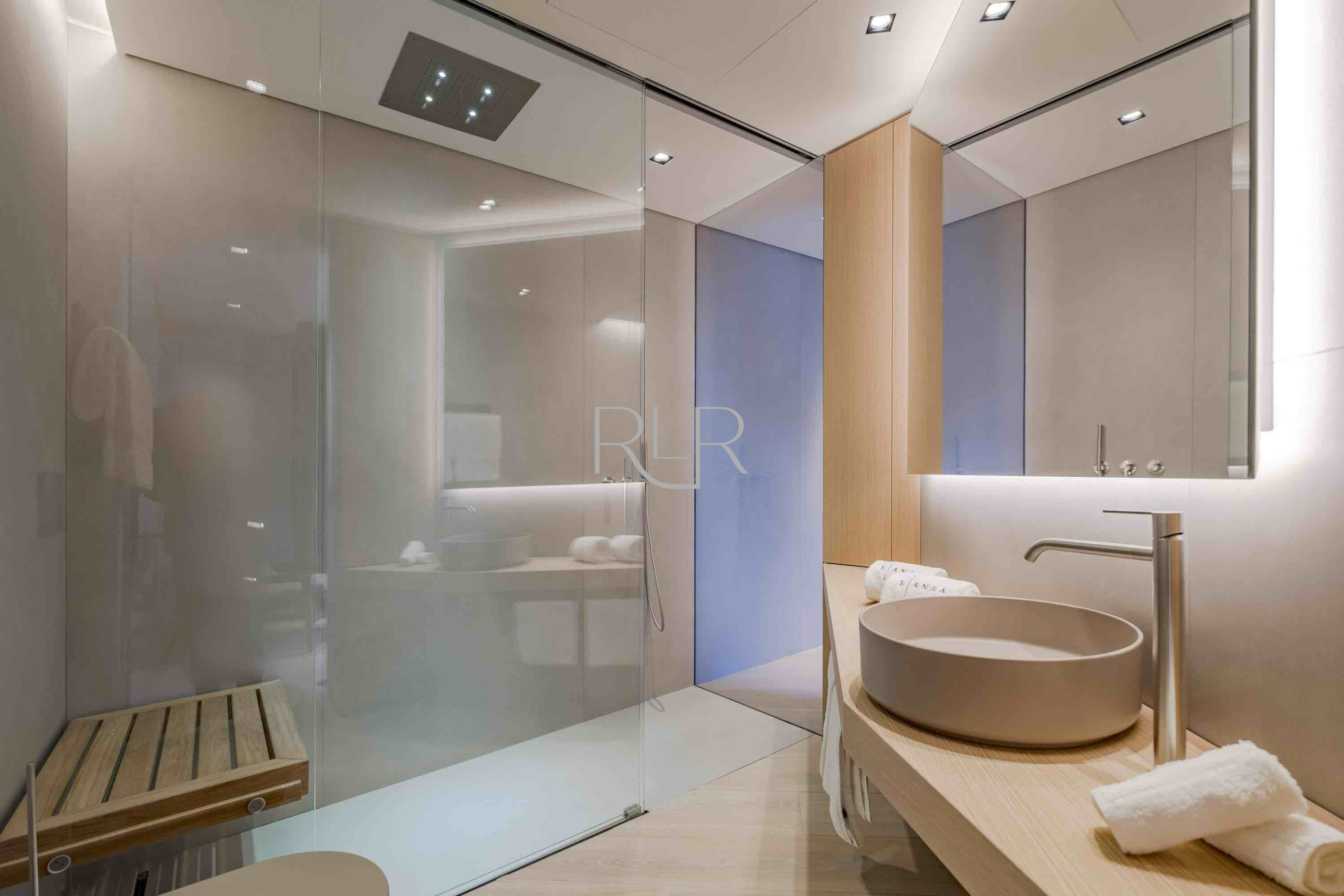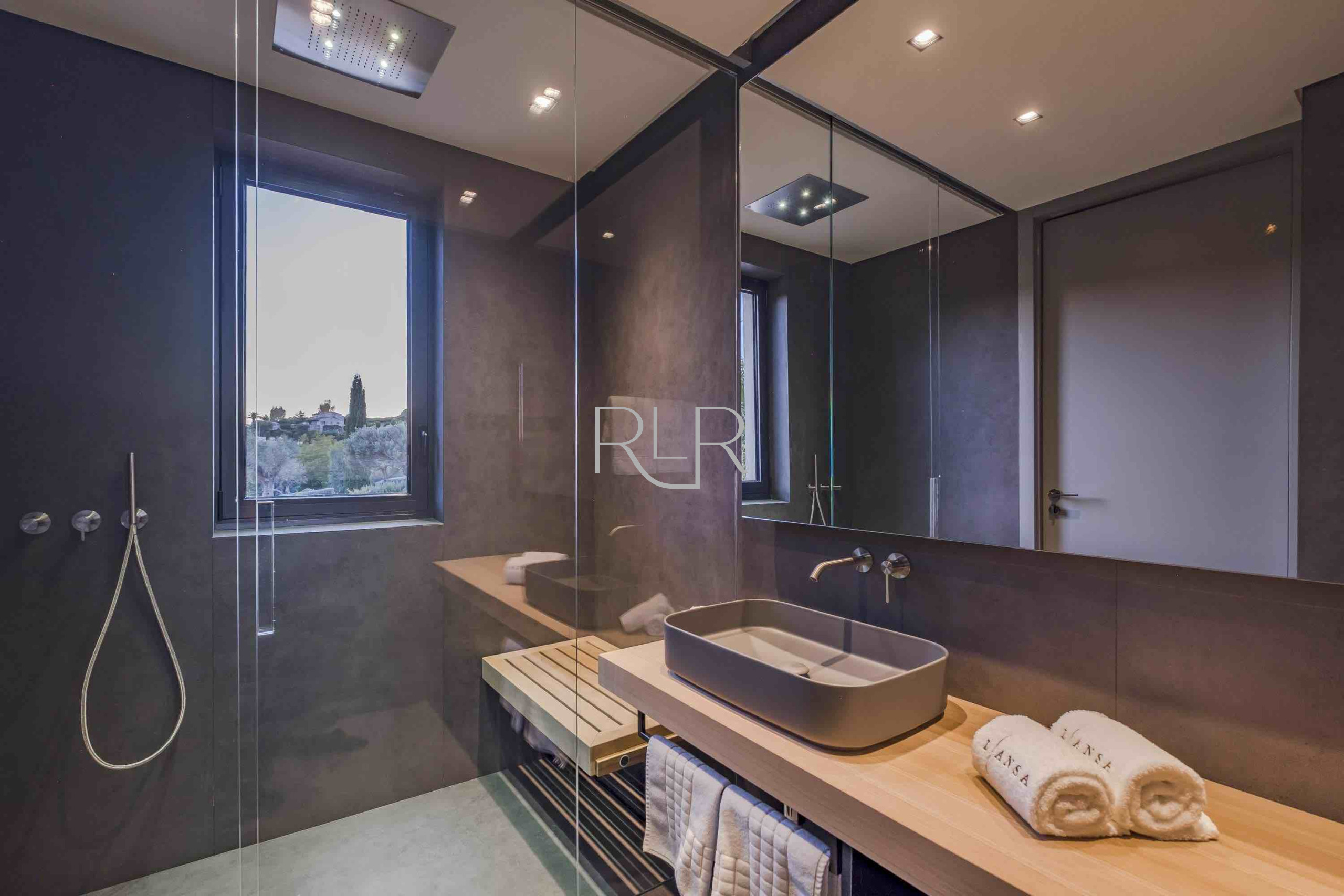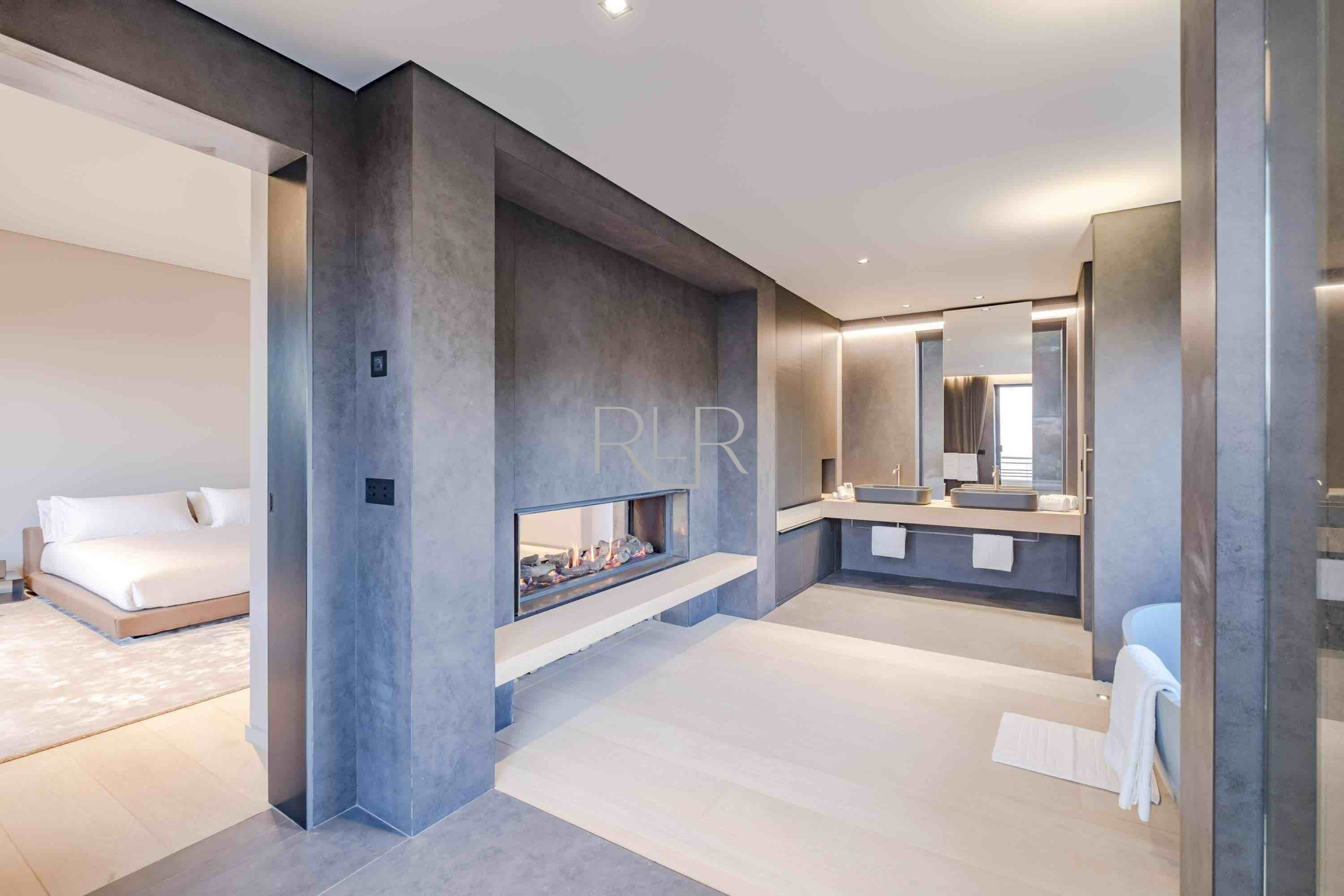 L’étage supérieur est réservé aux suites principales. La chambre principale occupe une position privilégiée, avec une vue imprenable sur la mer, une terrasse privée et une salle de bains attenante magnifiquement aménagée. Les autres chambres de ce niveau offrent le même sentiment de calme et d’intimité, chacune disposant de sa propre salle de bains et d’un accès direct à l’extérieur.