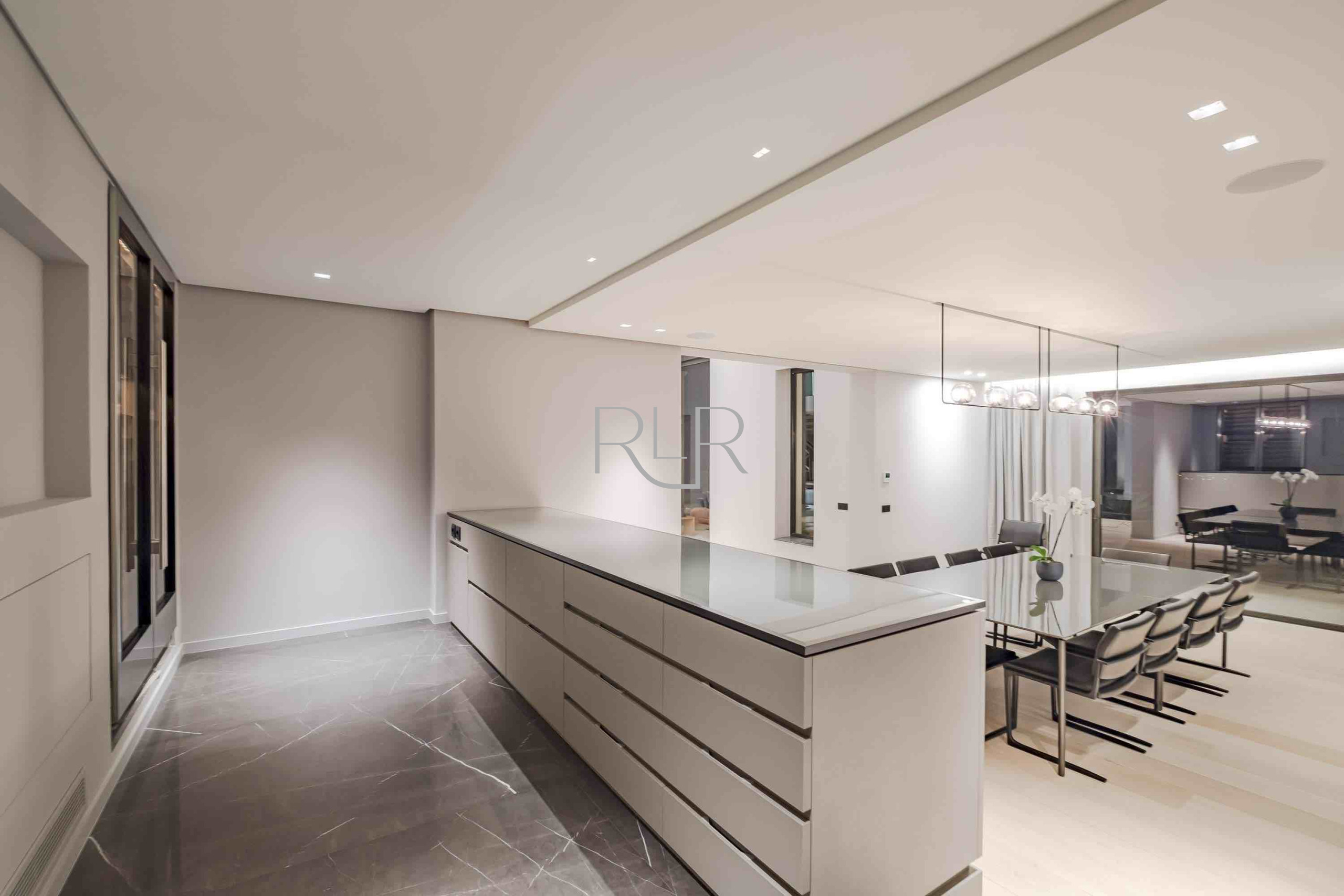 Au rez-de-chaussée, de vastes espaces de réception s’ouvrent naturellement sur de grandes terrasses surplombant la Méditerranée. Un salon raffiné, une salle à manger élégante et une cuisine entièrement équipée forment le cœur de la maison — un cadre conçu non pas pour être exhibé, mais pour bien vivre. Ici, le temps s’étire. Les matins commencent lentement, les après-midis se fondent dans la vue, et les soirées prennent un rythme qui leur est propre.