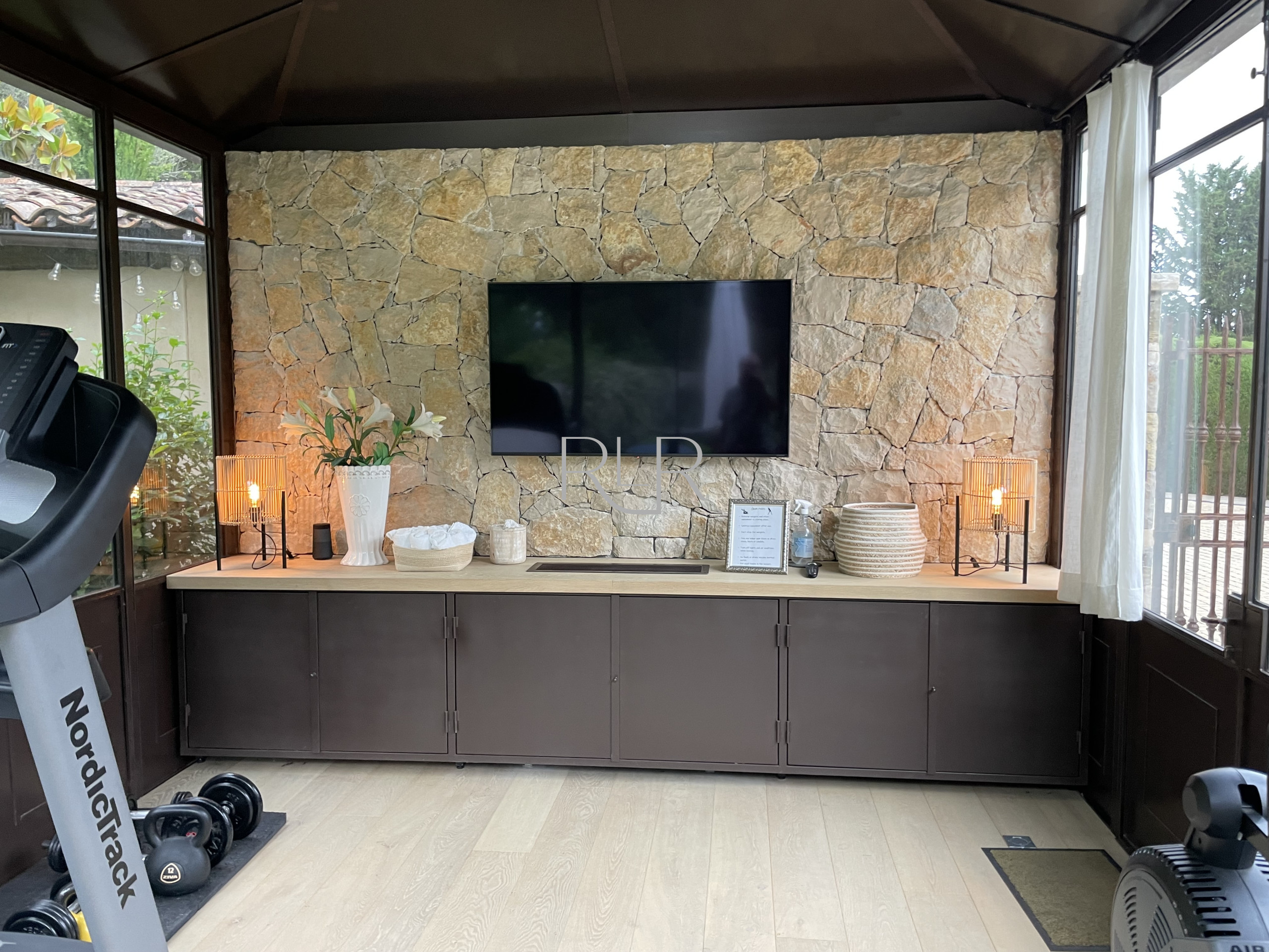 Elle dispose de jardin, barbecue, accès internet (wifi), salle de sport, climatisation, piscine privée.