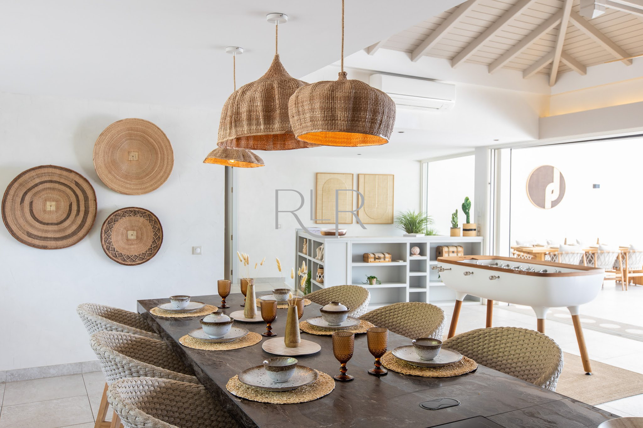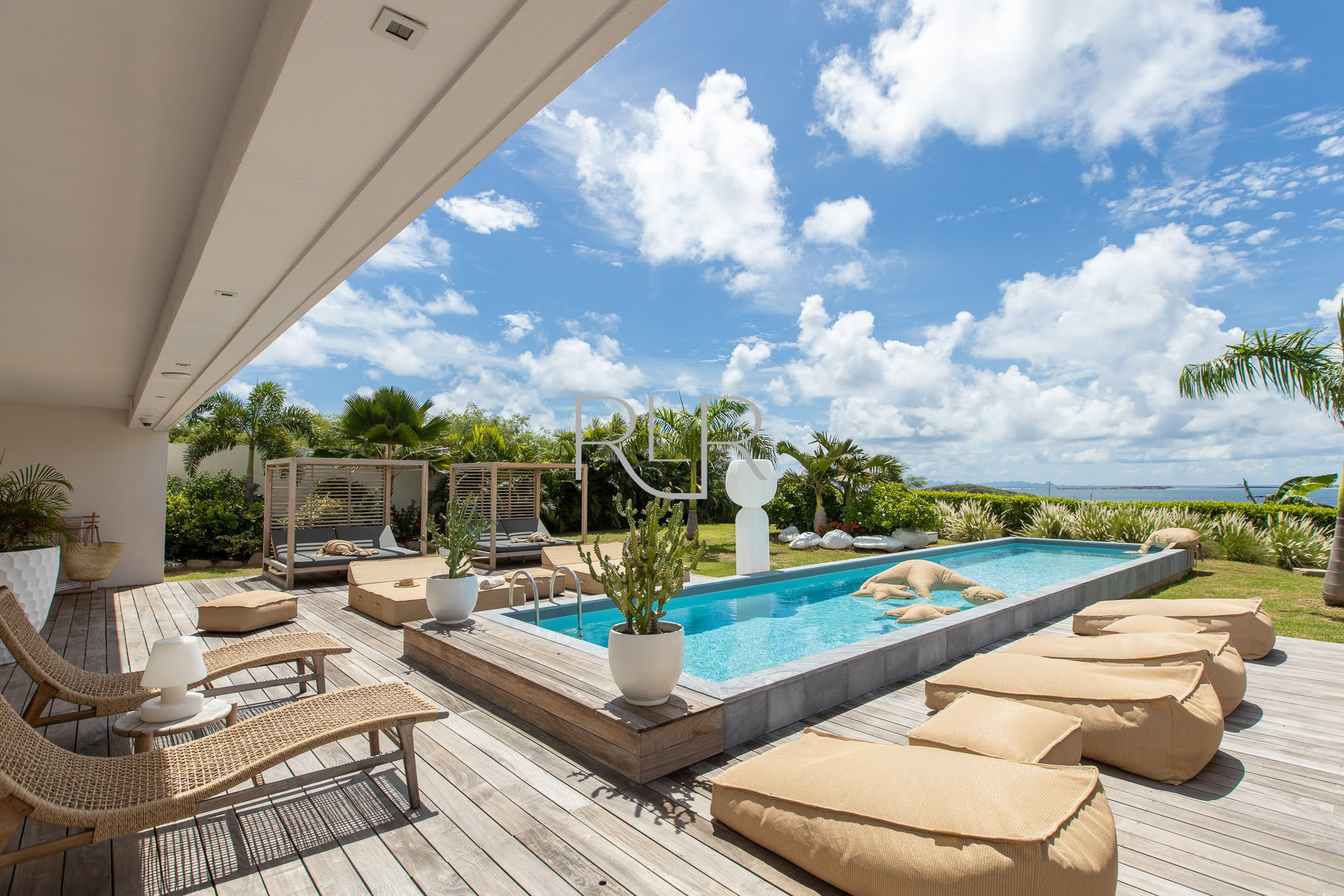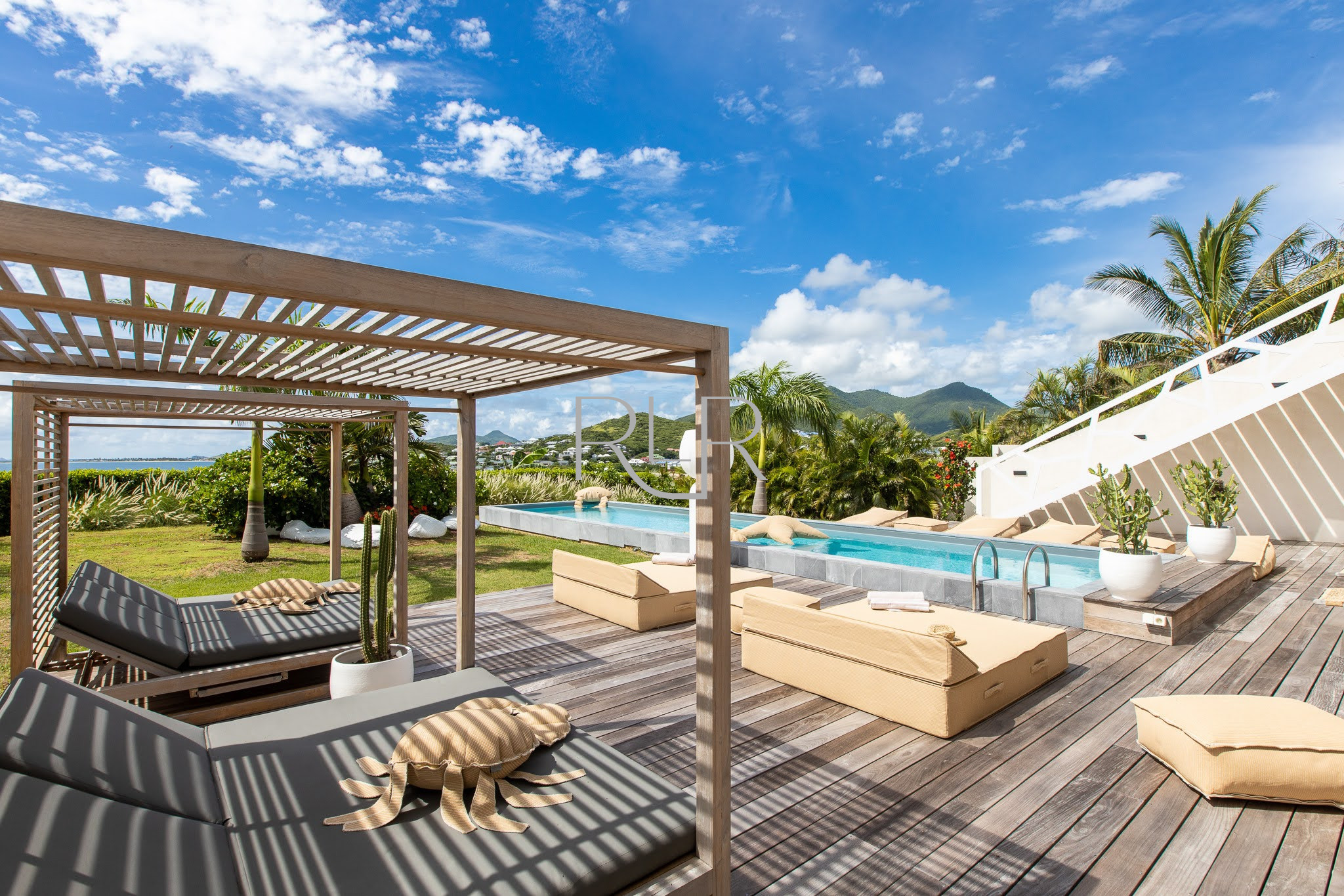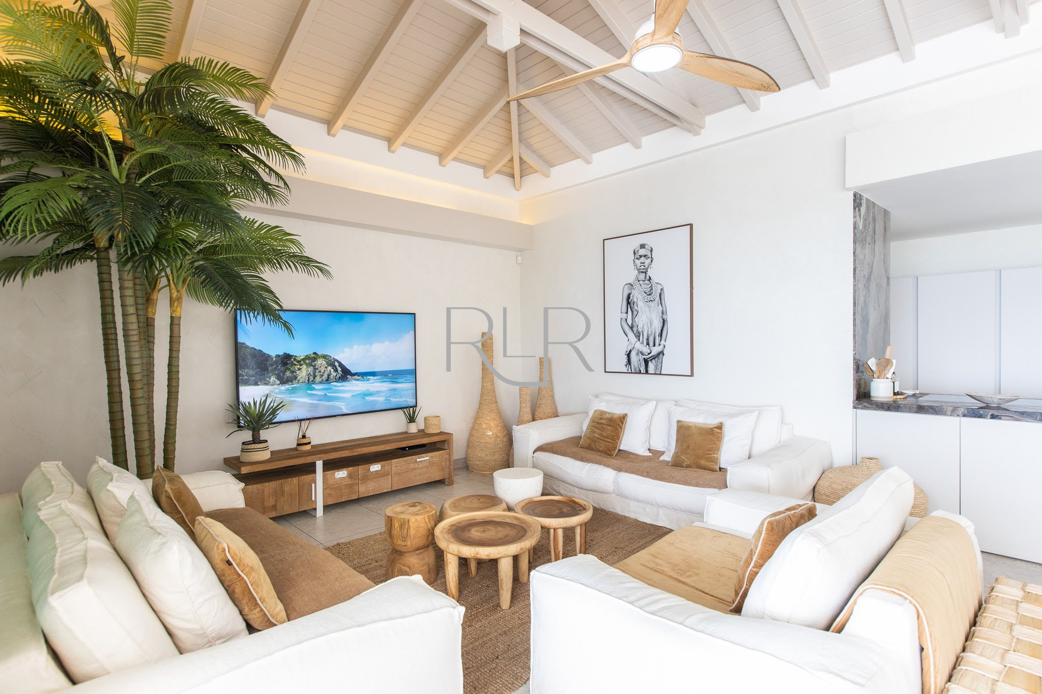 La Villa Lana est une luxueuse propriété de 5 chambres située dans le quartier exclusif de Cul de Sac, offrant une vue imprenable sur l'île Pinel et Saint-Barthélemy. Entièrement repensée pour offrir un confort et un style ultimes, la villa allie architecture contemporaine et beauté naturelle sur deux niveaux élégants.
