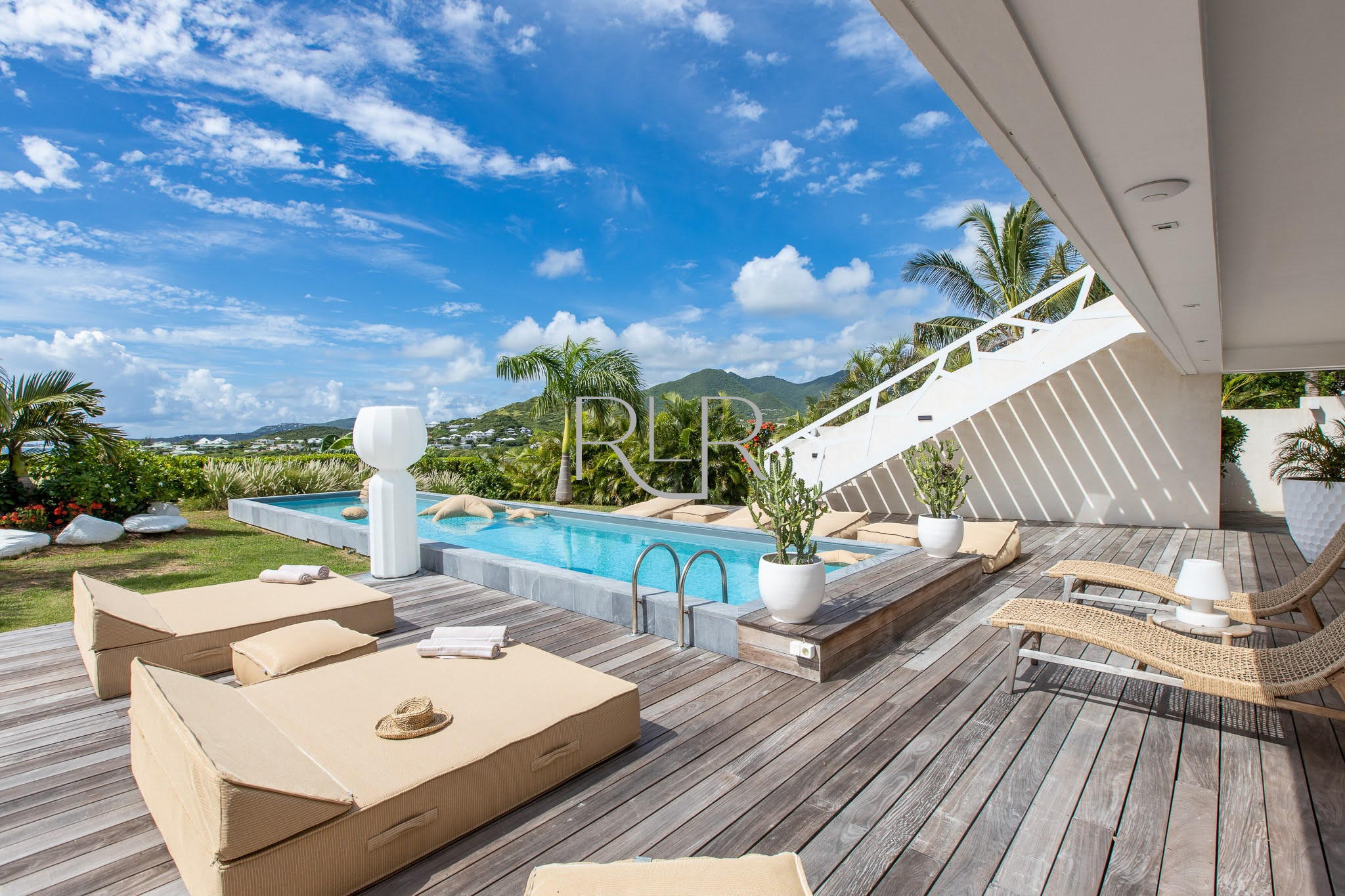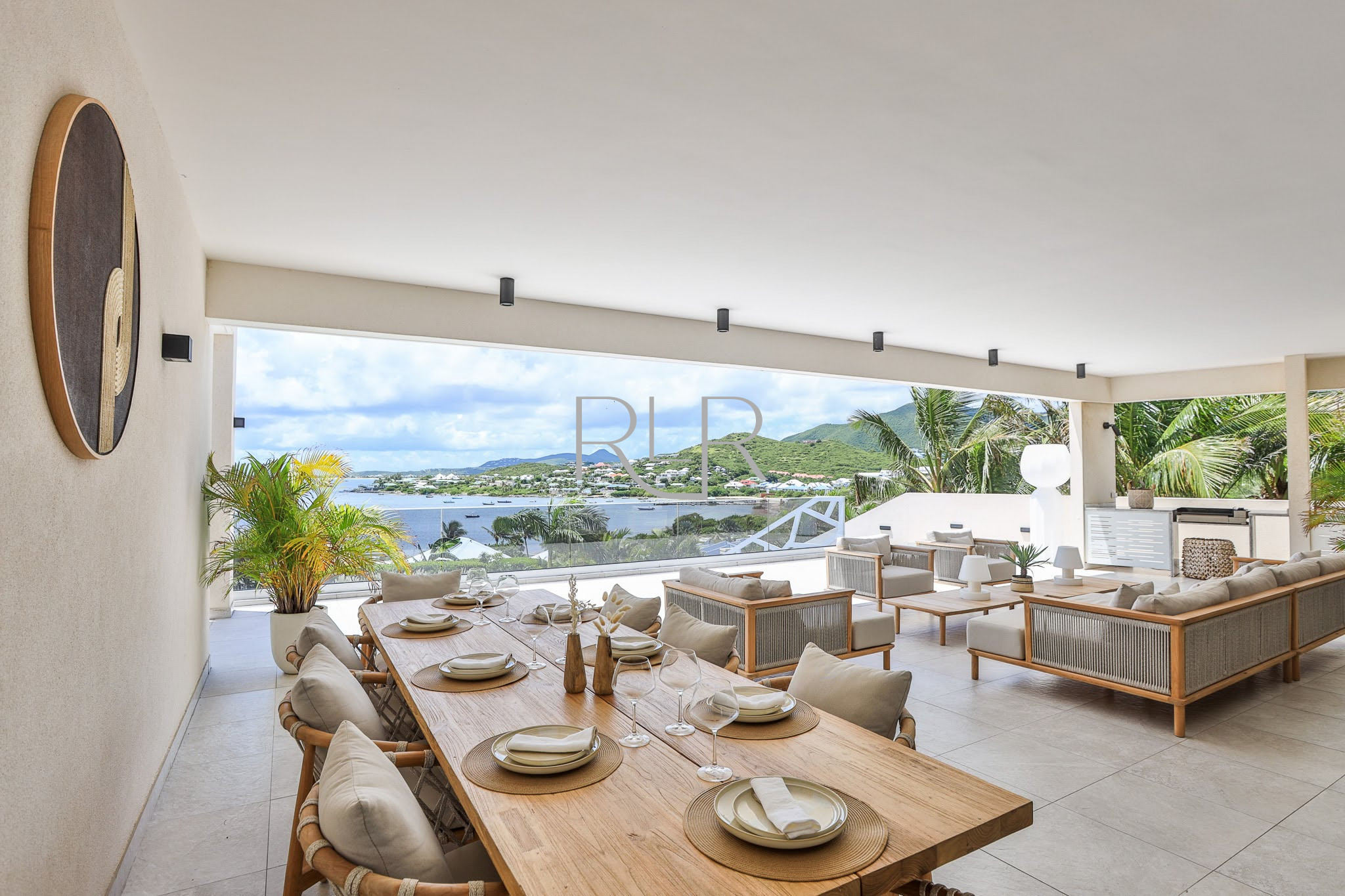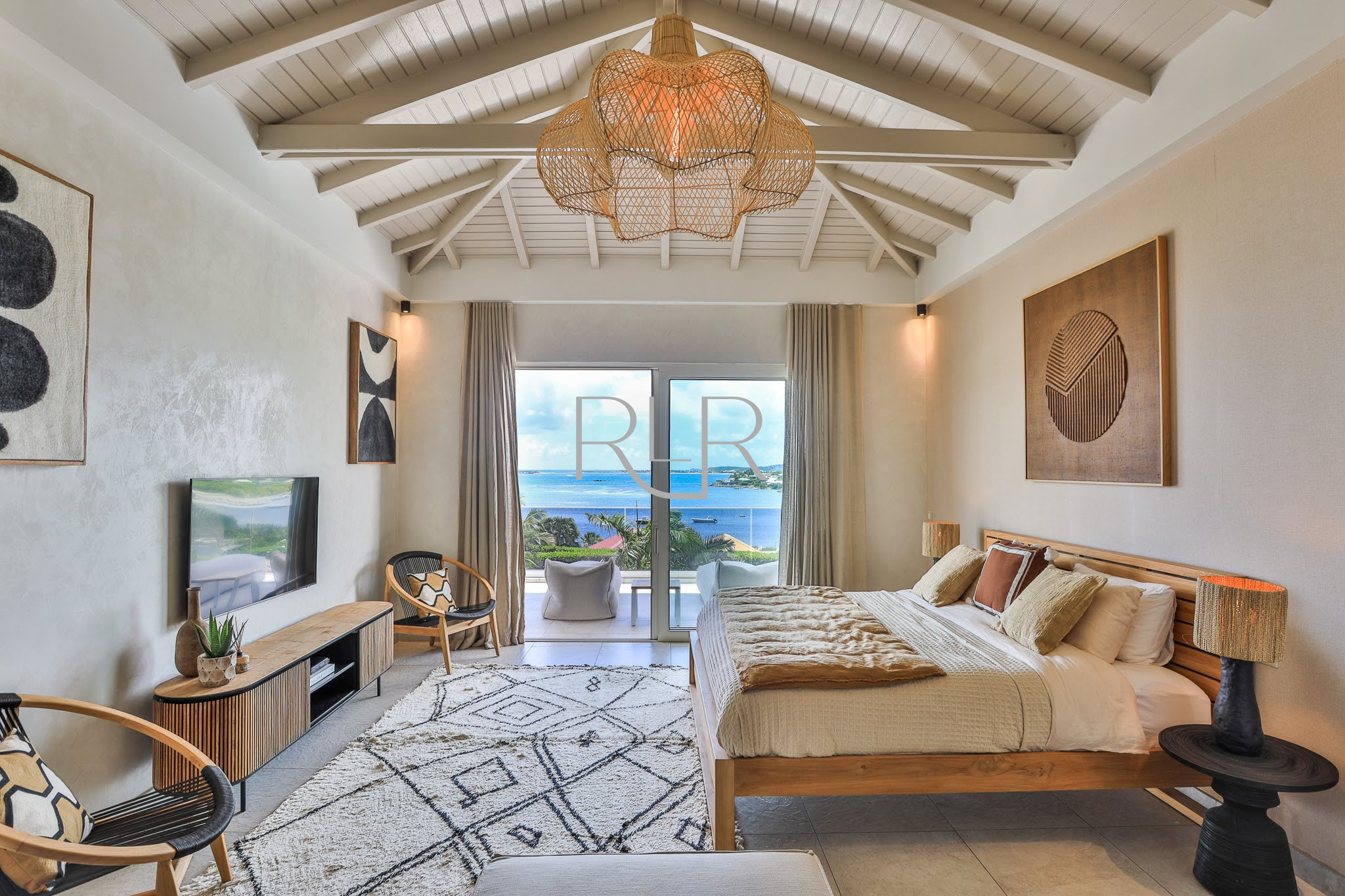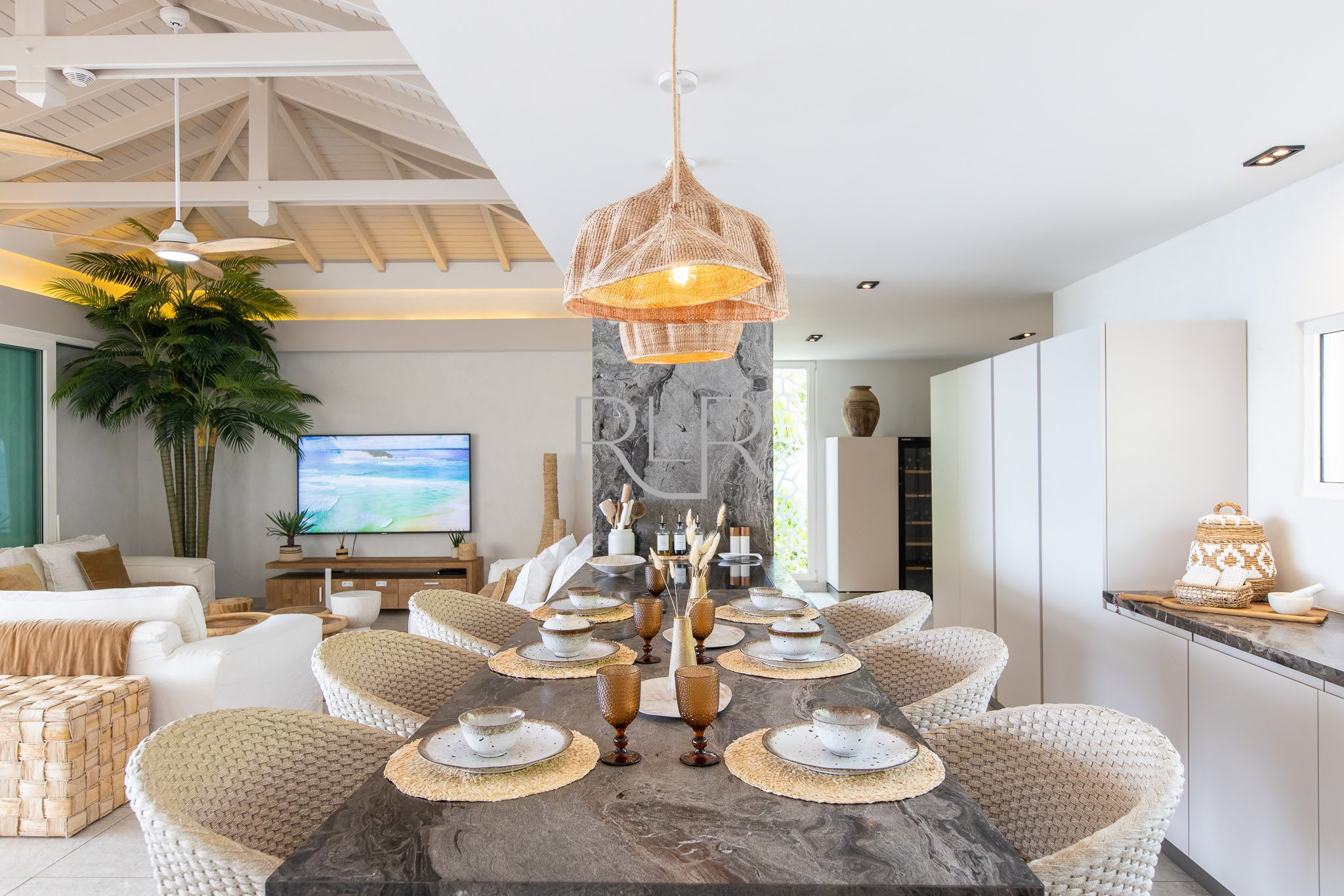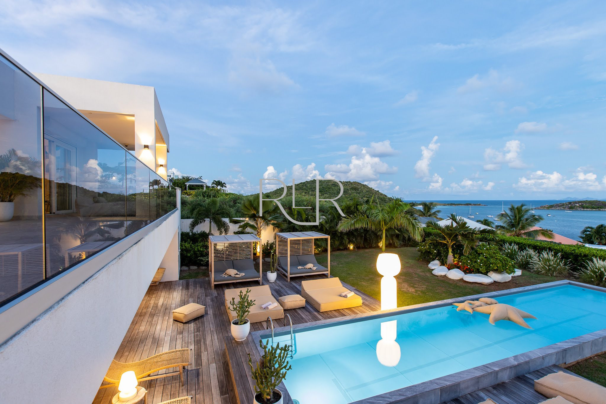 La Villa Lana est une luxueuse propriété de 5 chambres située dans le quartier exclusif de Cul de Sac, offrant une vue imprenable sur l'île Pinel et Saint-Barthélemy. Entièrement repensée pour offrir un confort et un style ultimes, la villa allie architecture contemporaine et beauté naturelle sur deux niveaux élégants.