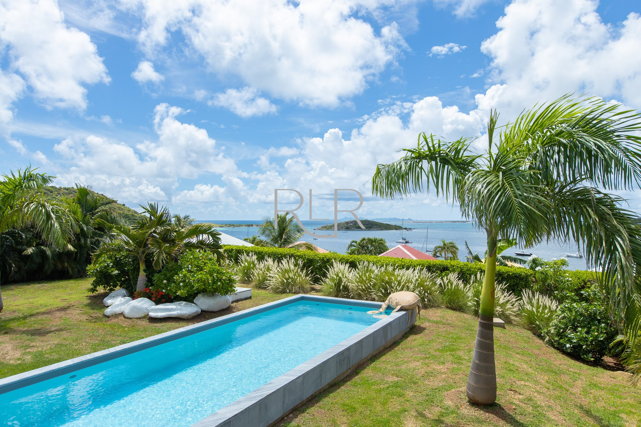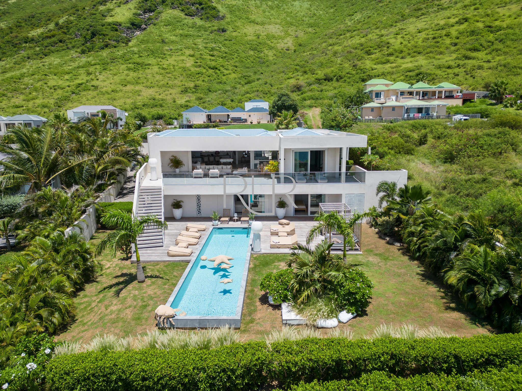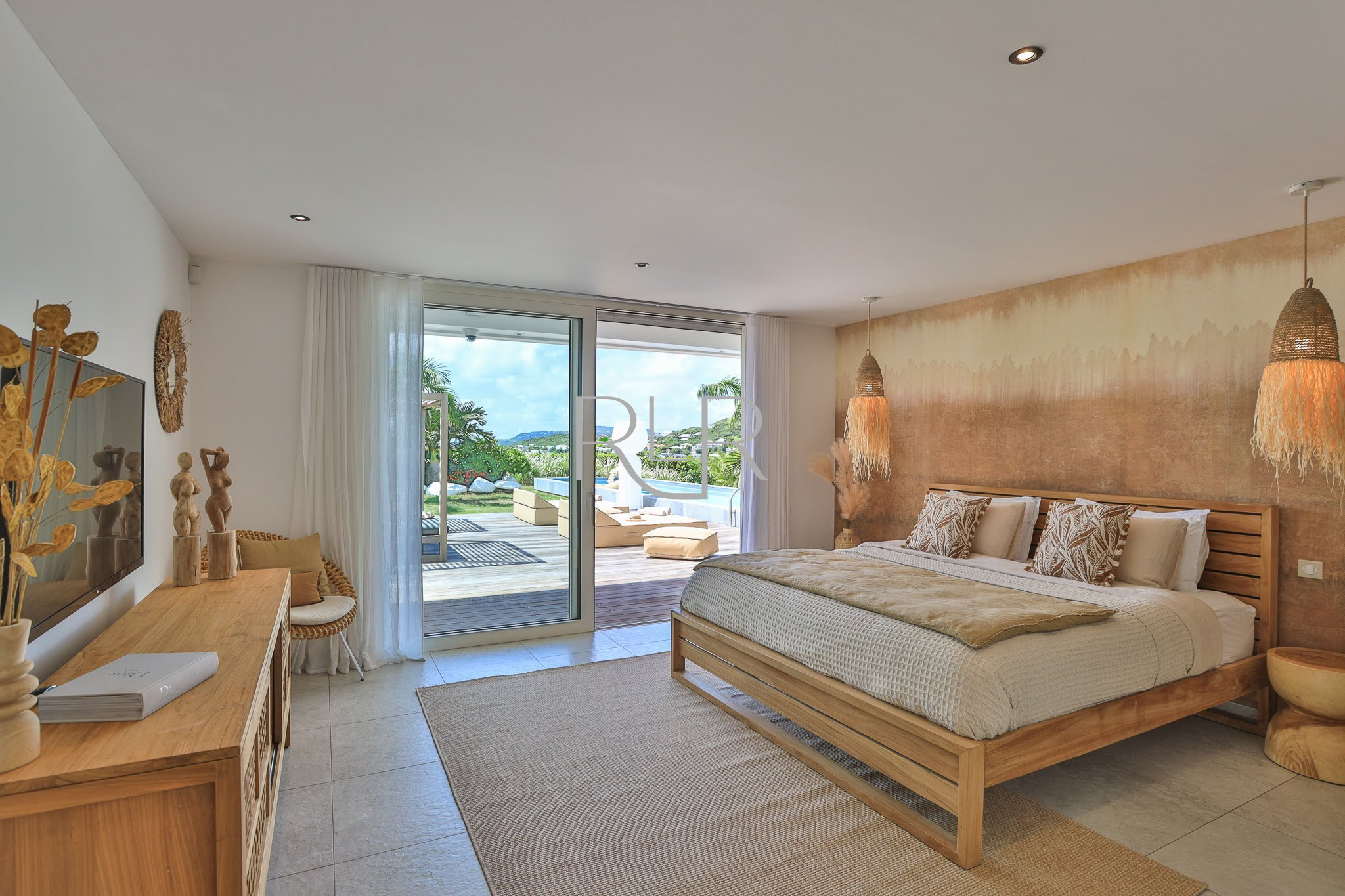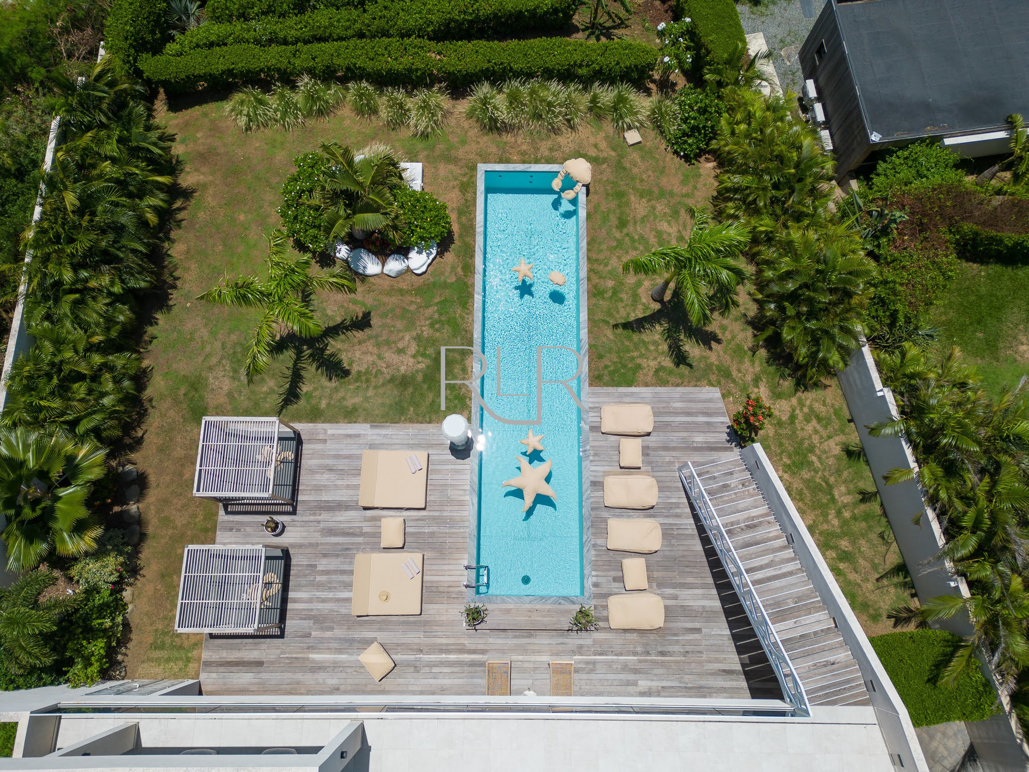 La Villa Lana est une luxueuse propriété de 5 chambres située dans le quartier exclusif de Cul de Sac, offrant une vue imprenable sur l'île Pinel et Saint-Barthélemy. Entièrement repensée pour offrir un confort et un style ultimes, la villa allie architecture contemporaine et beauté naturelle sur deux niveaux élégants.