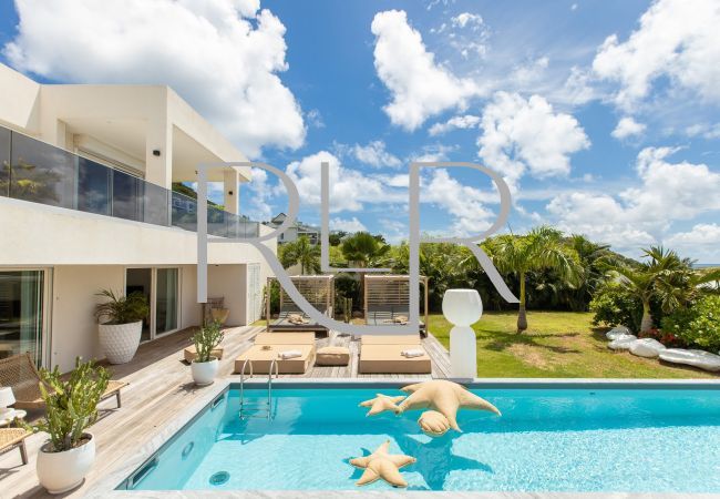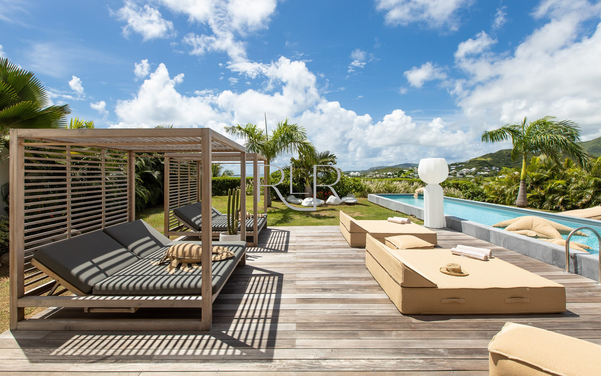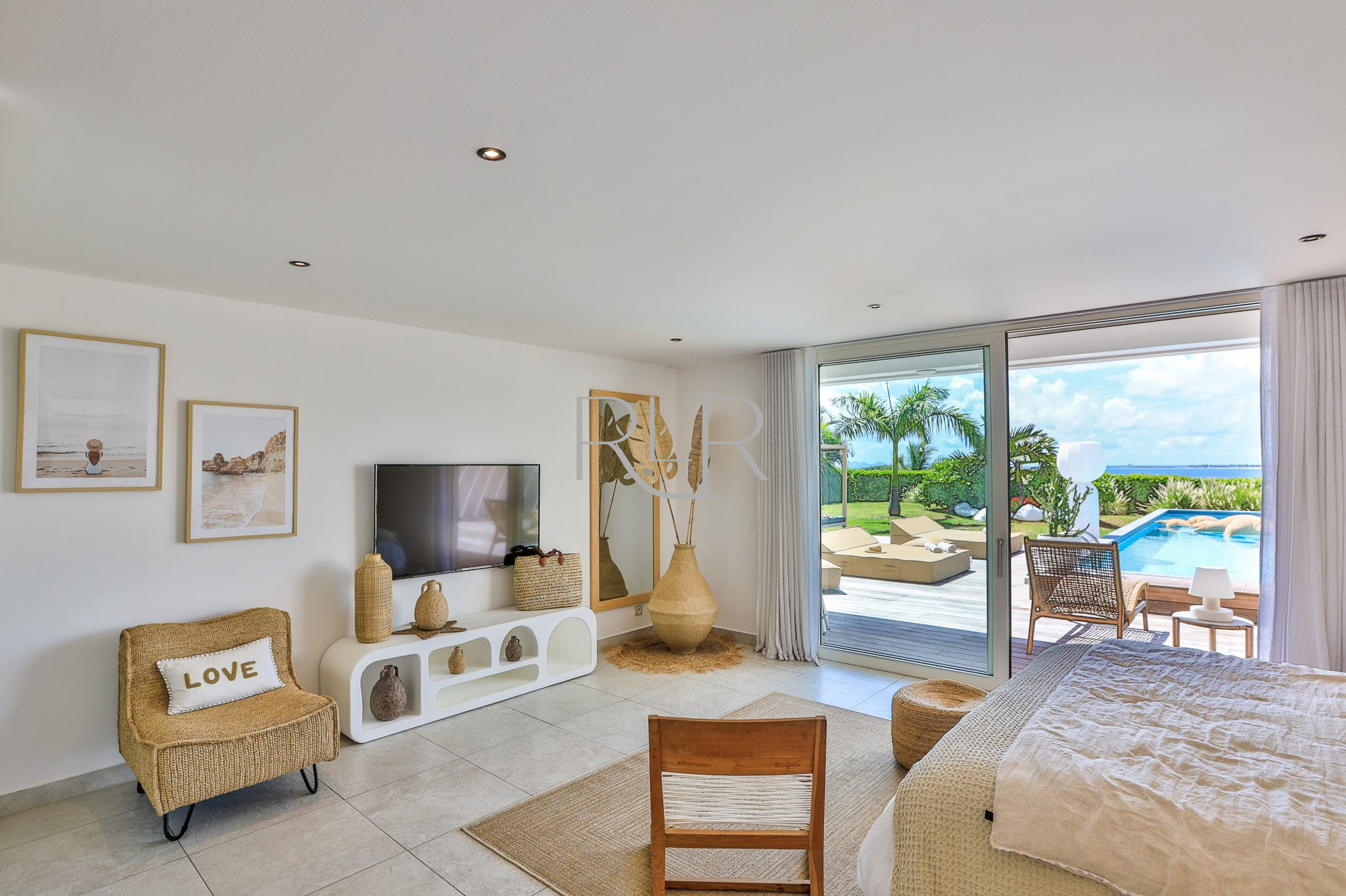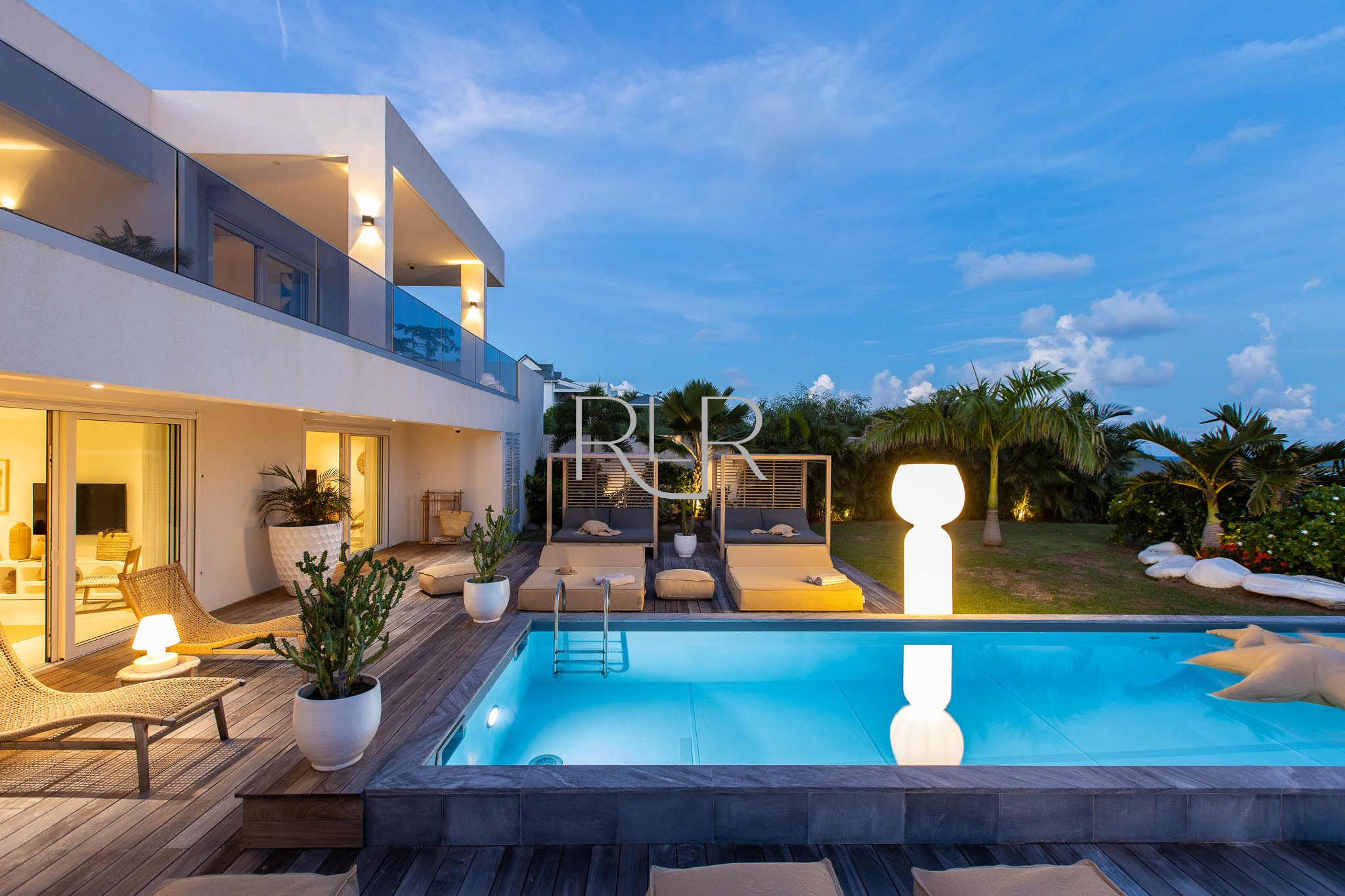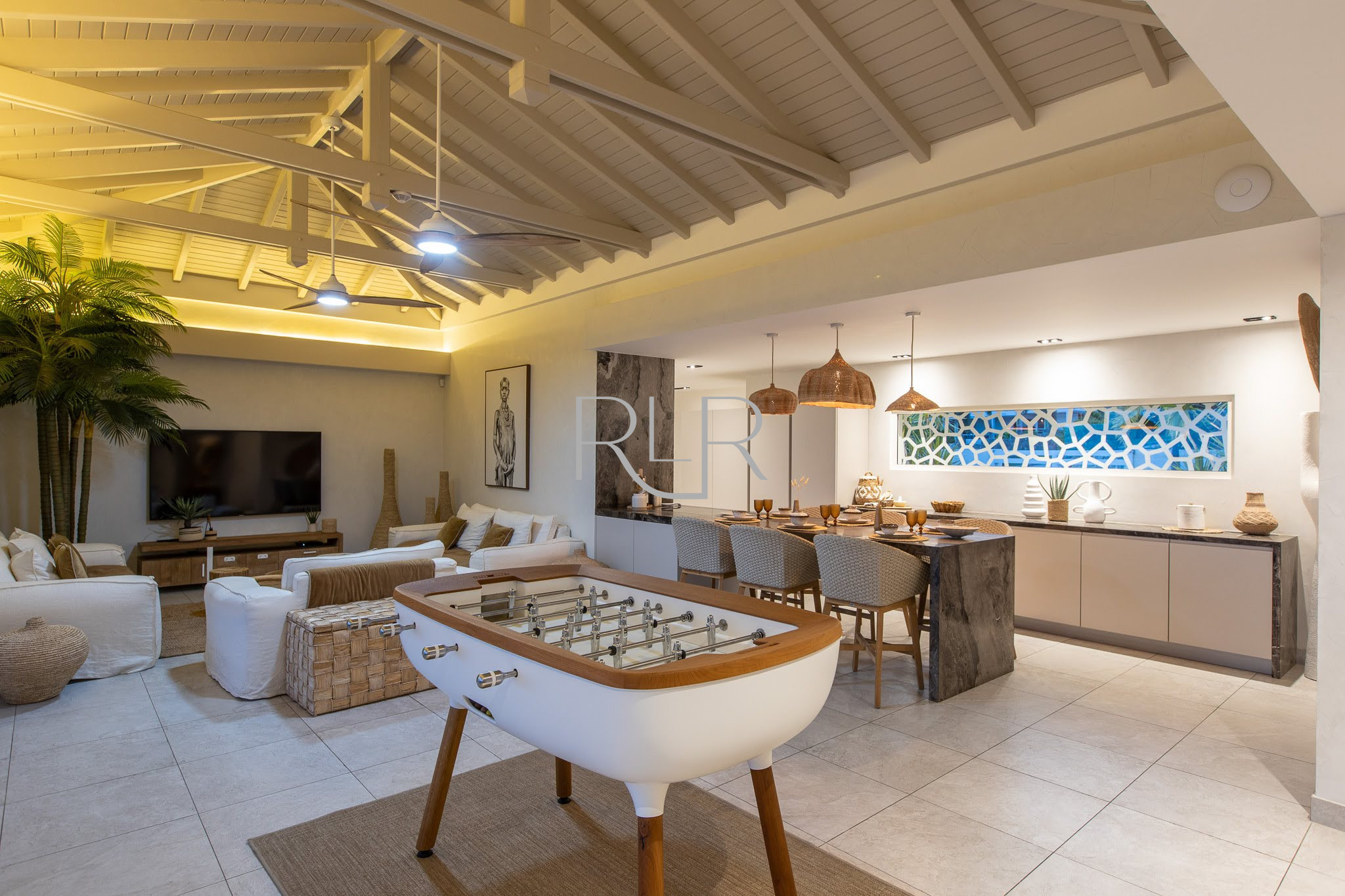 La Villa Lana est une luxueuse propriété de 5 chambres située dans le quartier exclusif de Cul de Sac, offrant une vue imprenable sur l'île Pinel et Saint-Barthélemy. Entièrement repensée pour offrir un confort et un style ultimes, la villa allie architecture contemporaine et beauté naturelle sur deux niveaux élégants.