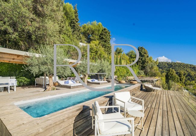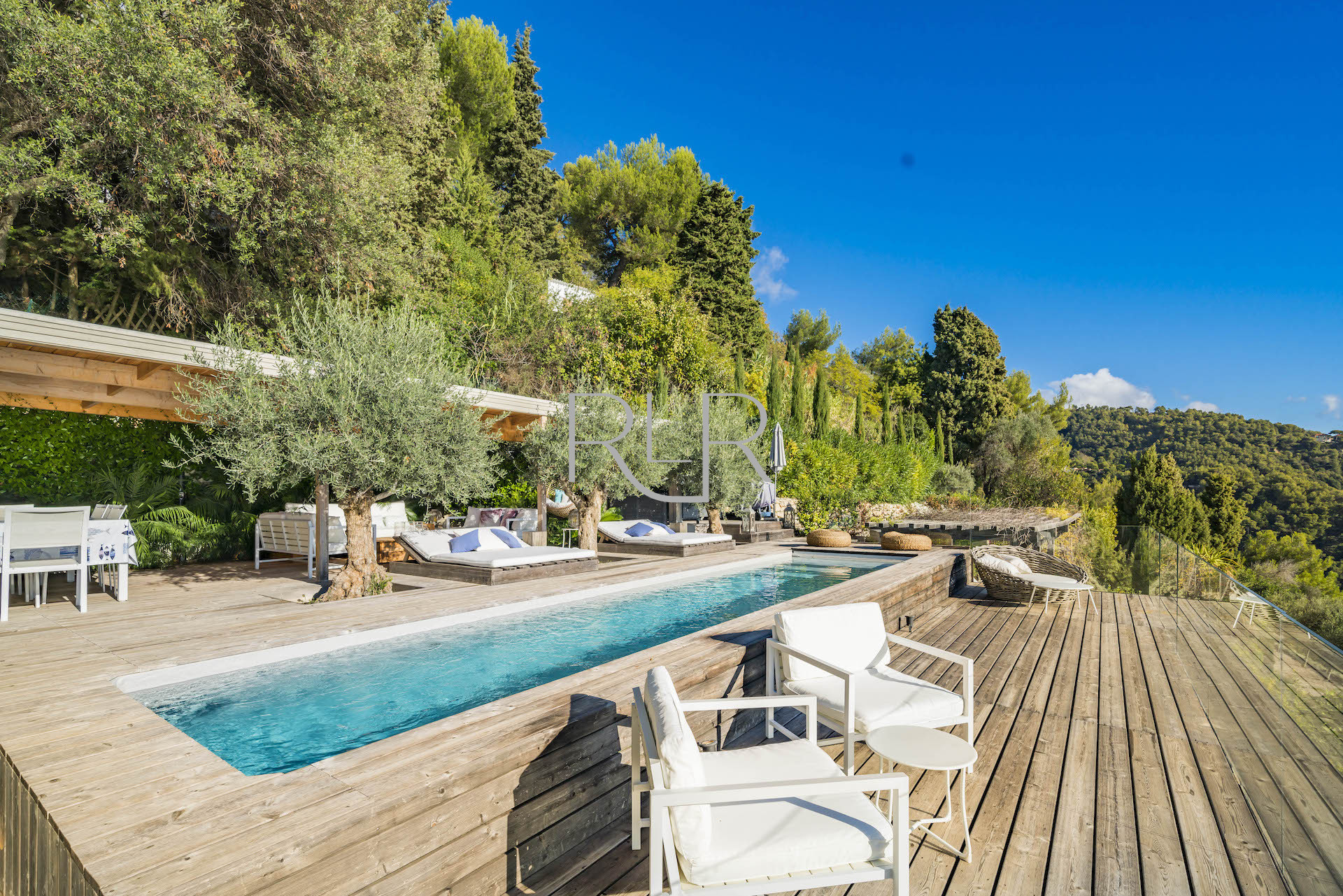 La terrasse principale est un véritable bijou, avec sa piscine, ses nombreux espaces de détente et de repas, le tout entouré d’oliviers centenaires.
