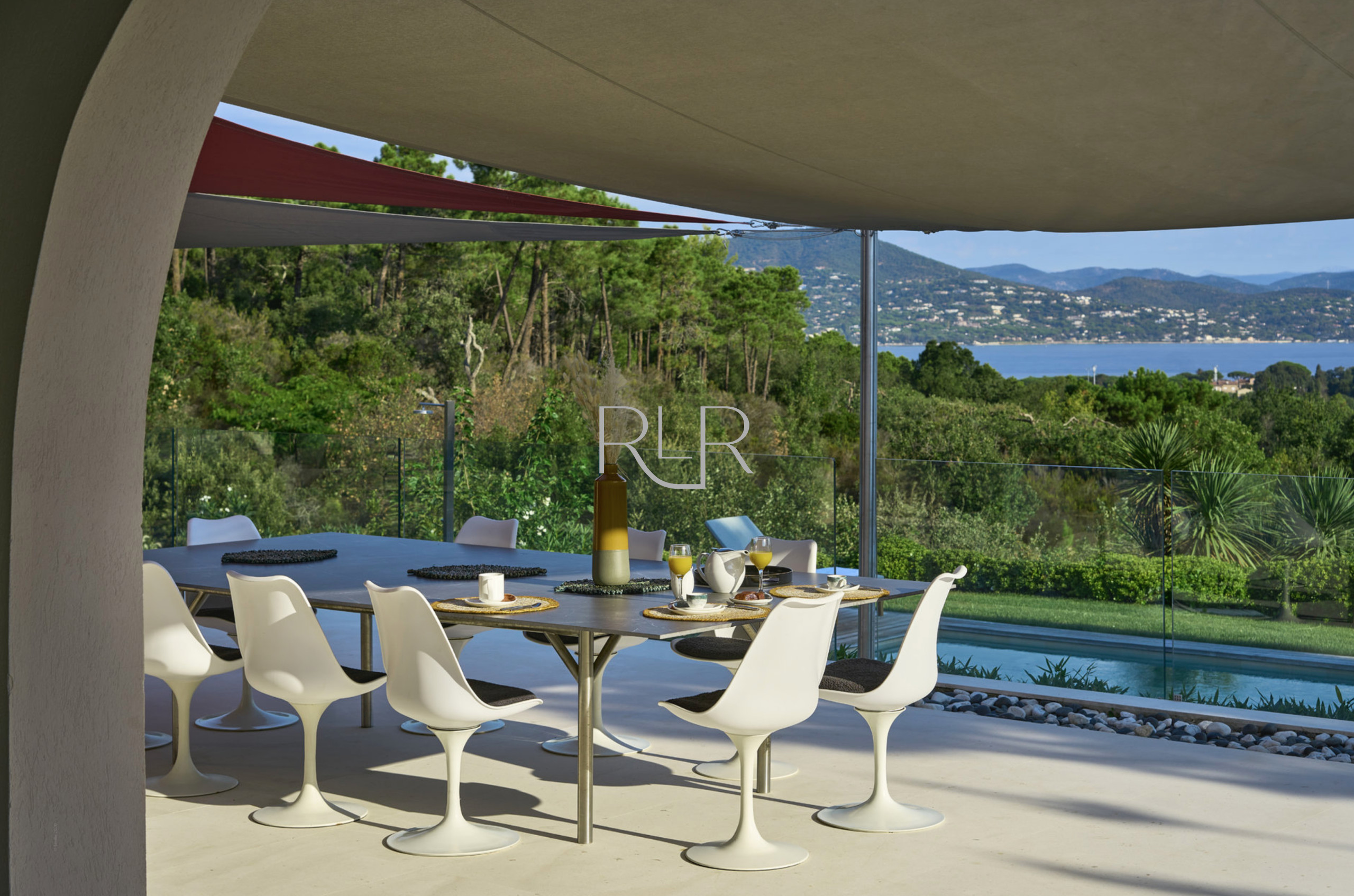 Les vastes espaces extérieurs sont conçus pour sublimer vos soirées tropéziennes : une grande piscine, un bar d’été, plusieurs salons extérieurs et une ambiance élégante en toute intimité.