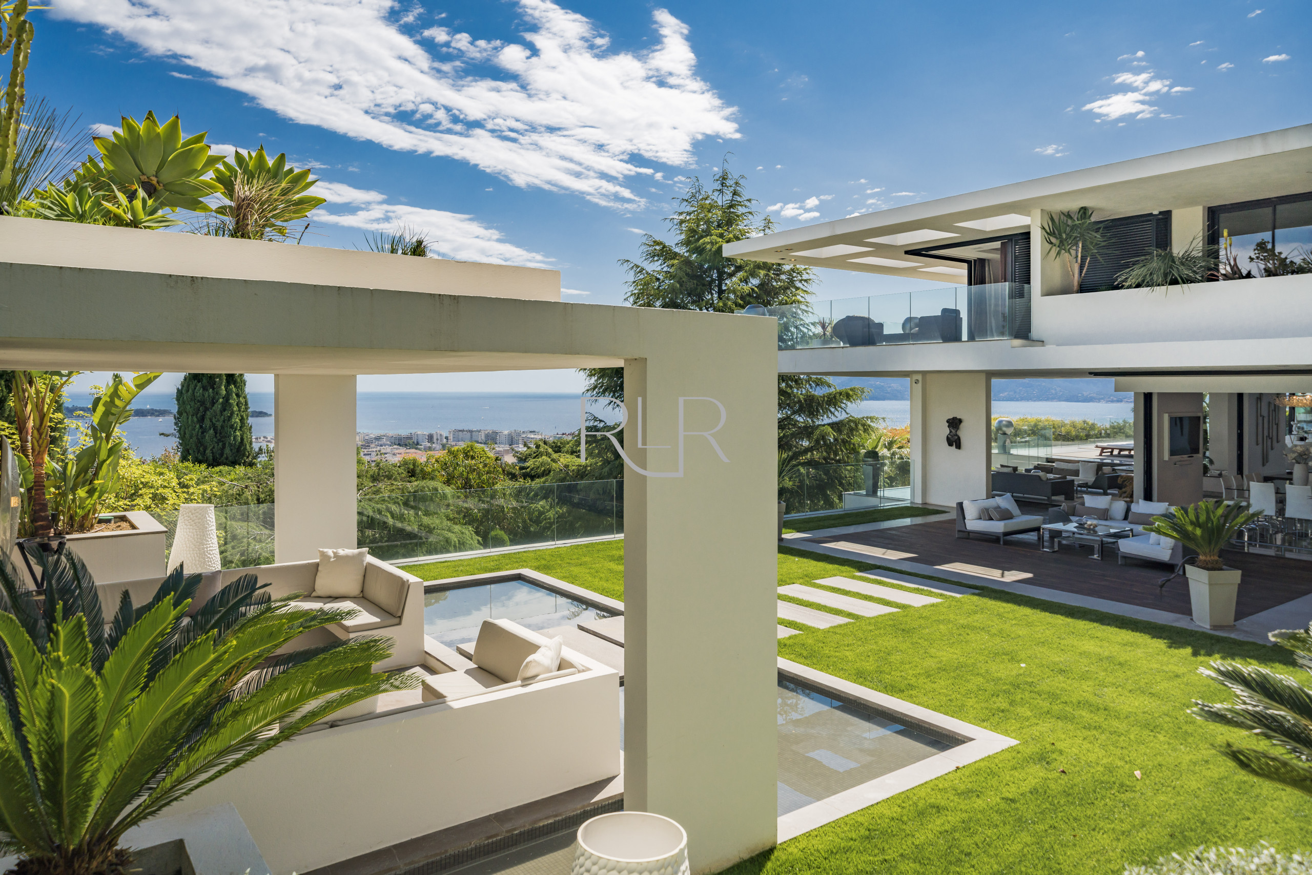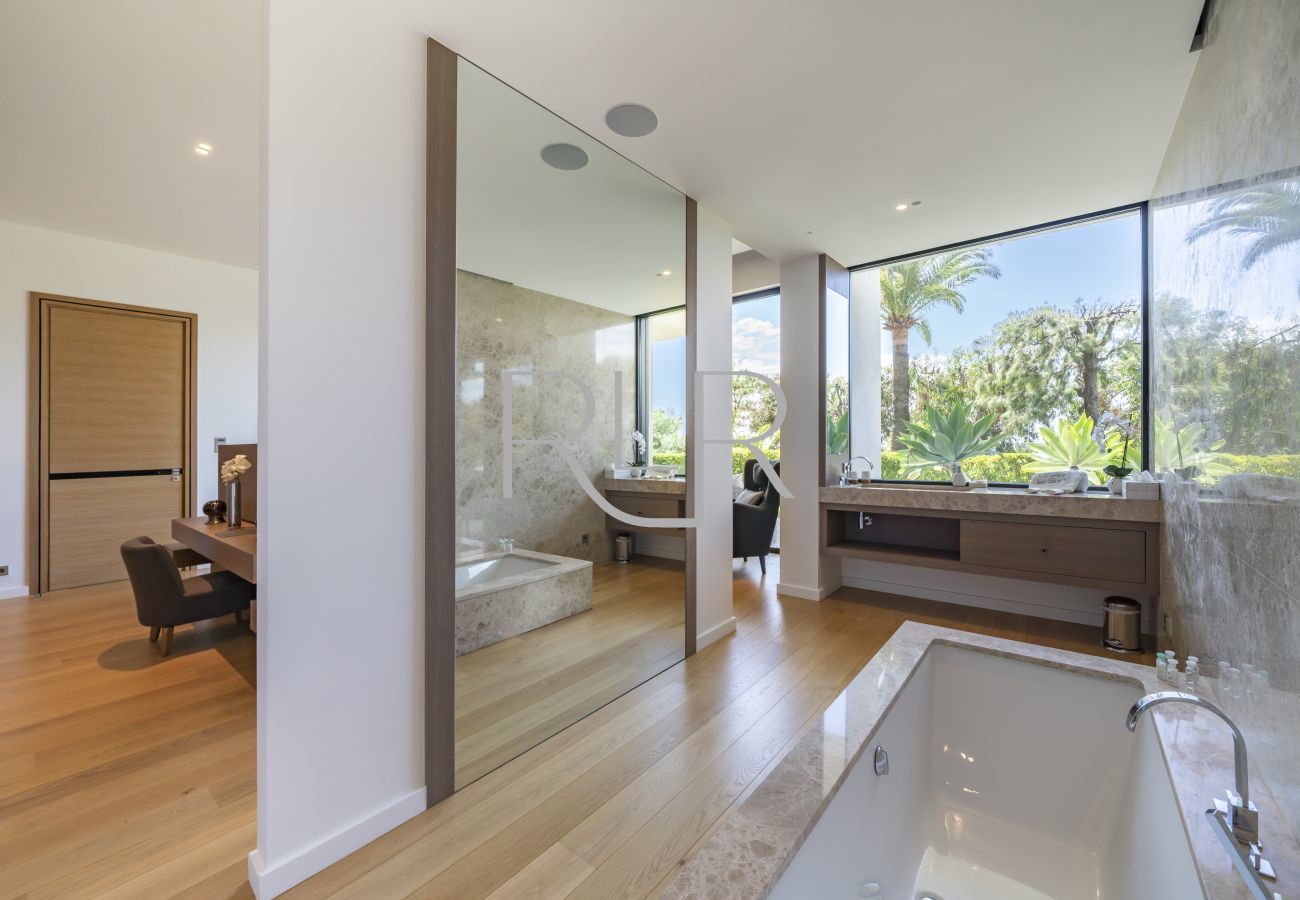 Step into a world of luxury with this exceptional 800 sq.m contemporary villa, spread across four levels and set within an expansive 6,000 sq.m estate. Designed for ultimate comfort, the villa features air conditioning throughout, a private lift, and breathtaking panoramic views spanning from the Lérins Islands to Cap d’Antibes.