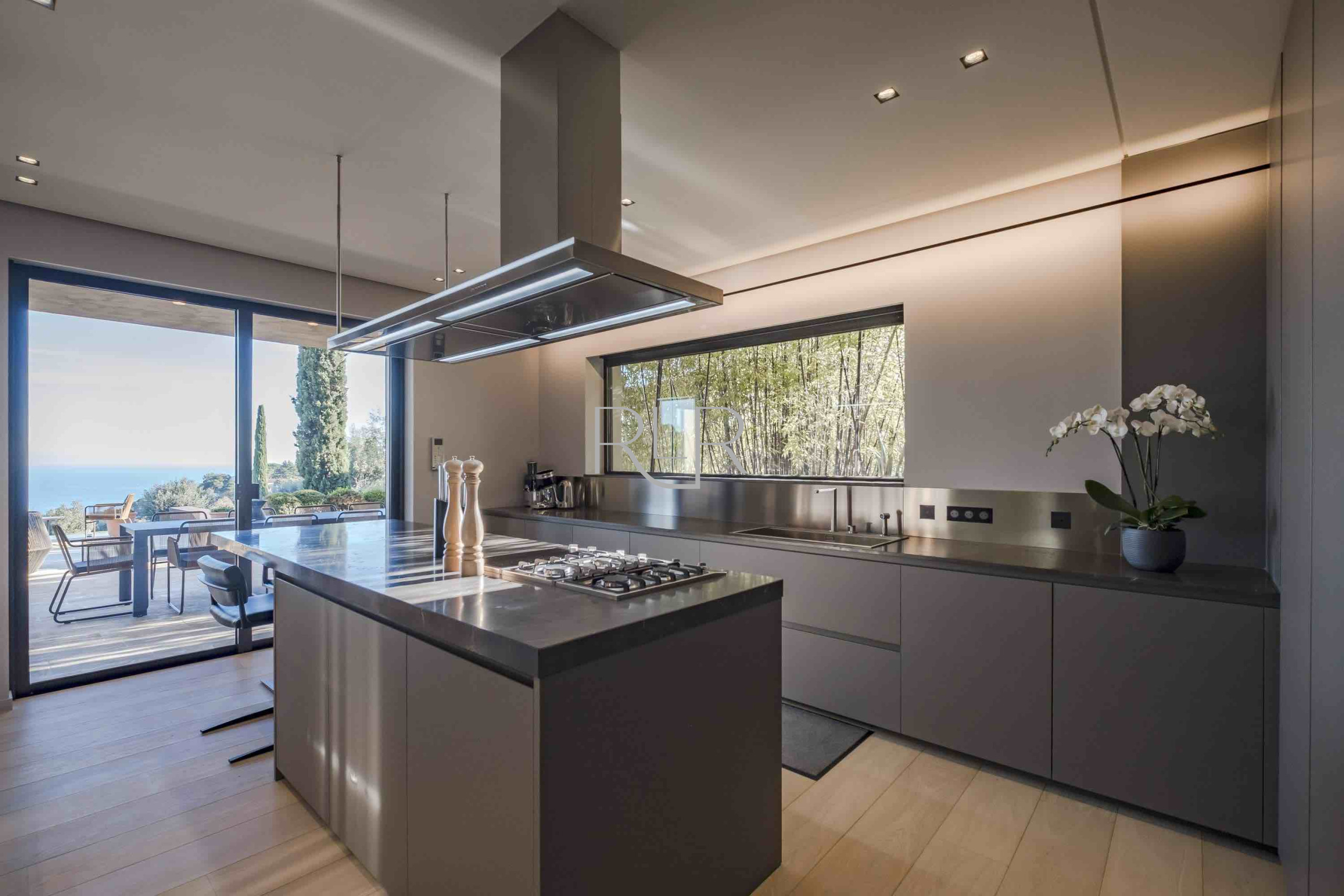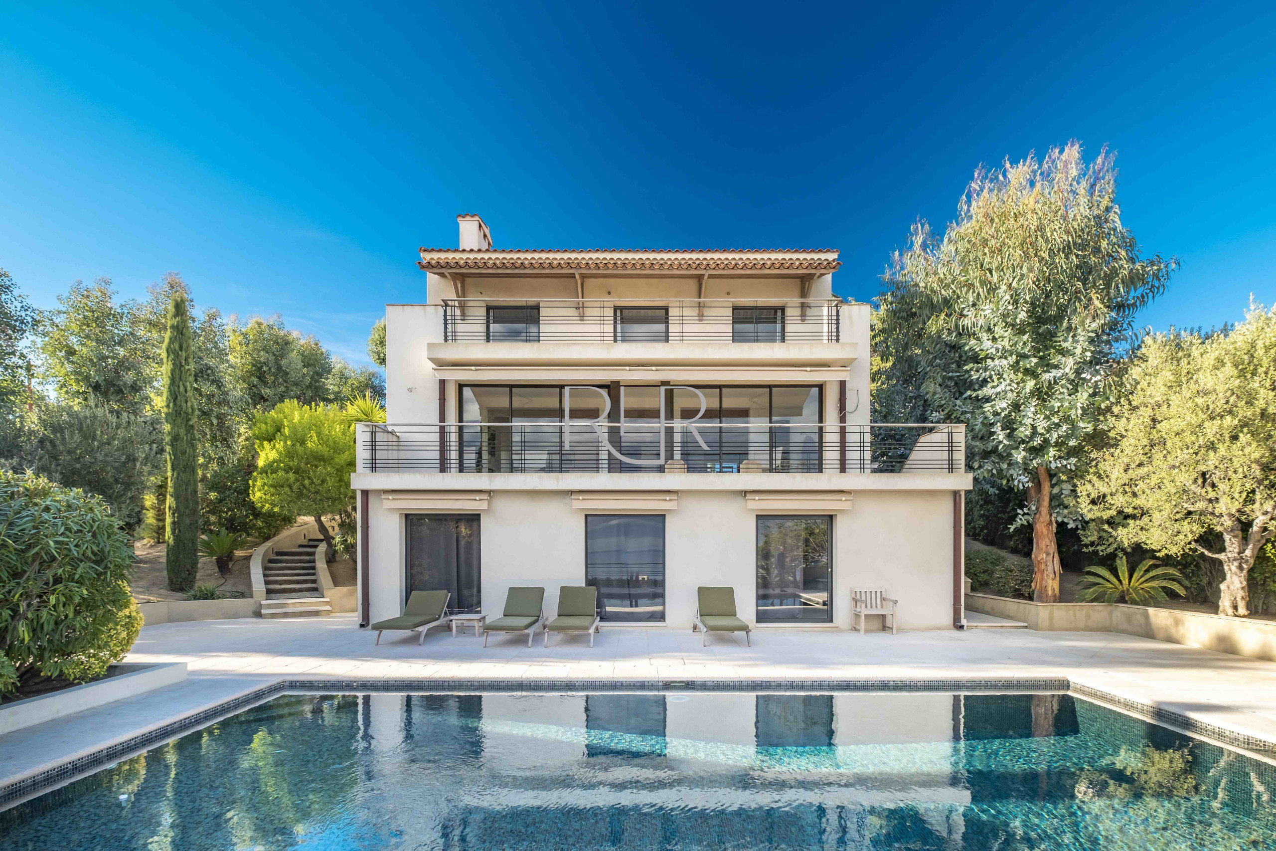 Enjoy a beautifully landscaped garden, expansive terraces, and a swimming pool with a pool house and summer kitchen, perfect for relaxing and entertaining under the Riviera sun. A private parking area completes this outstanding property.