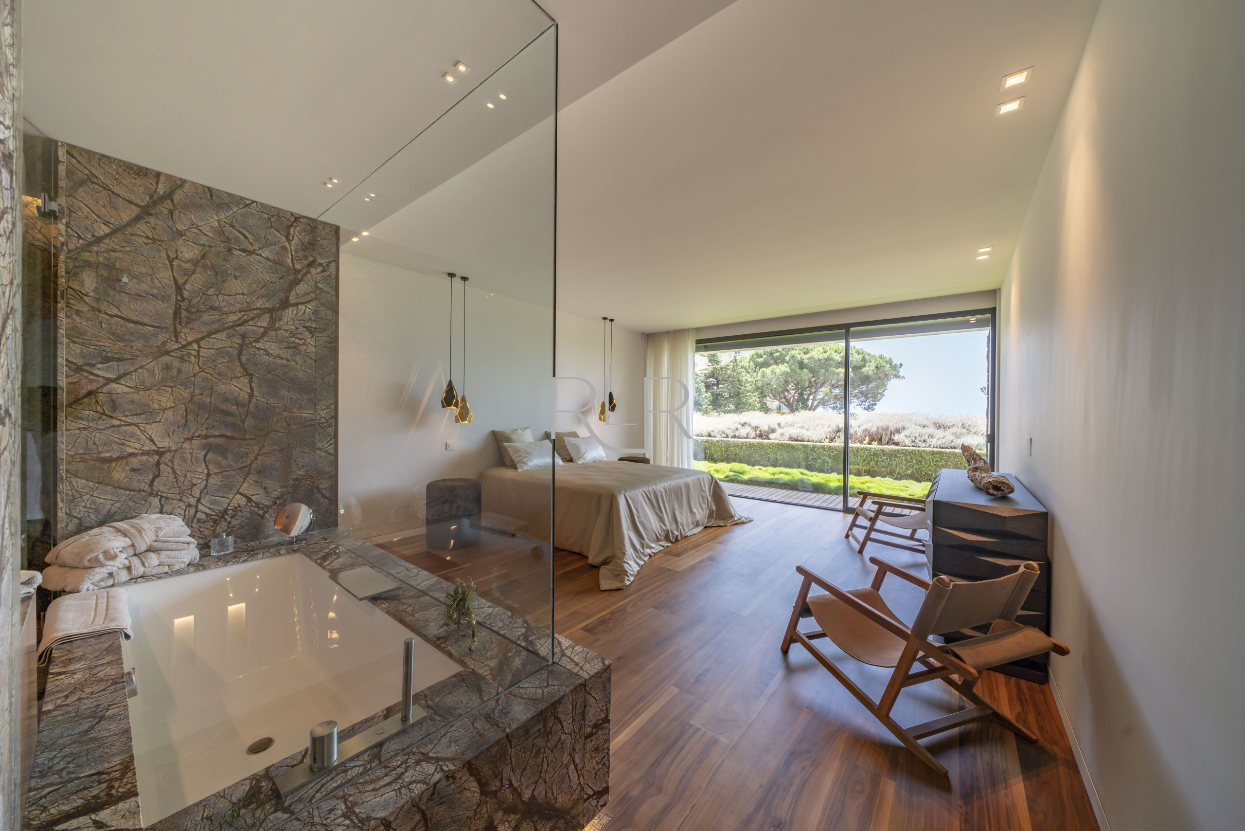 - Bedroom 4 : Master bedroom (180cms) TV lounge, with an ensuite shower room, double sink, independent toilet. Dressing.Terrace.
