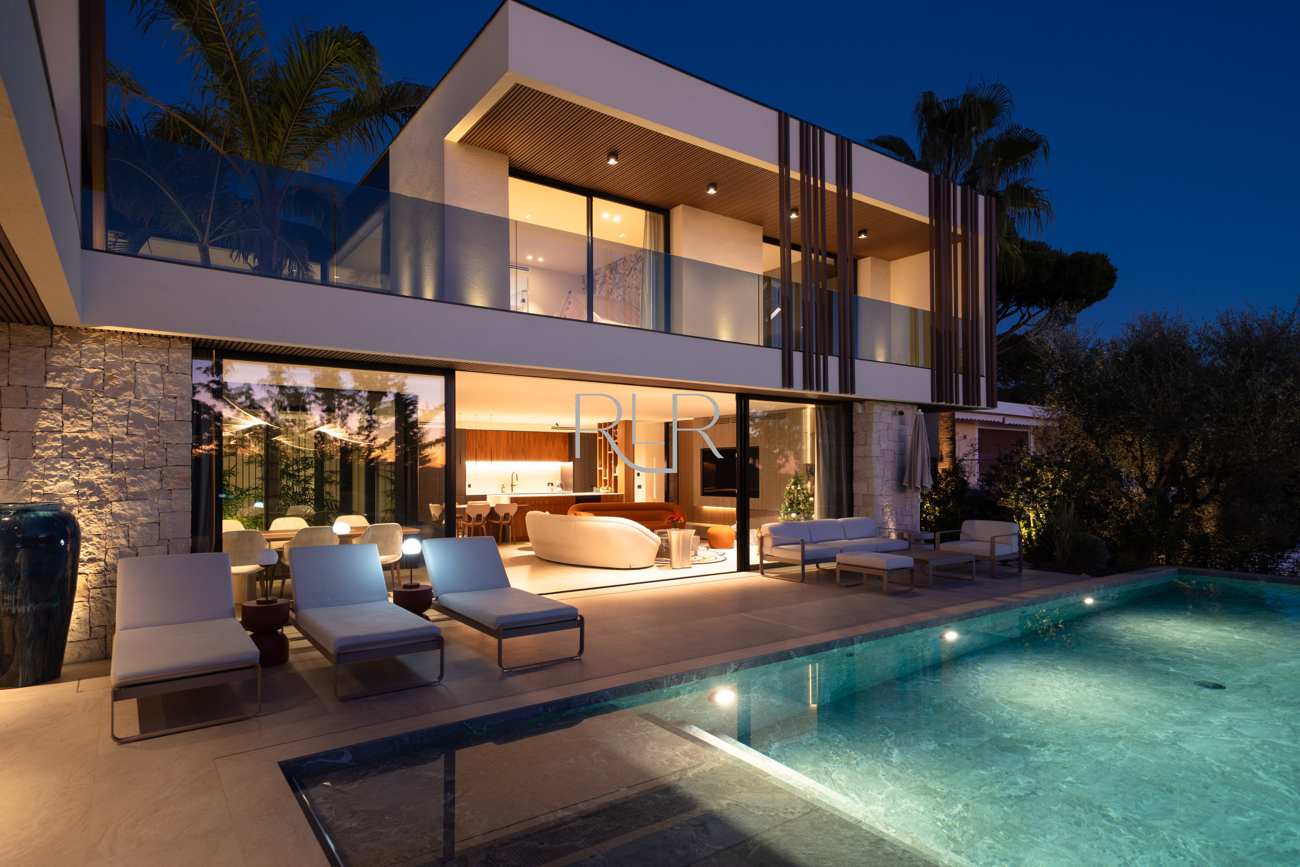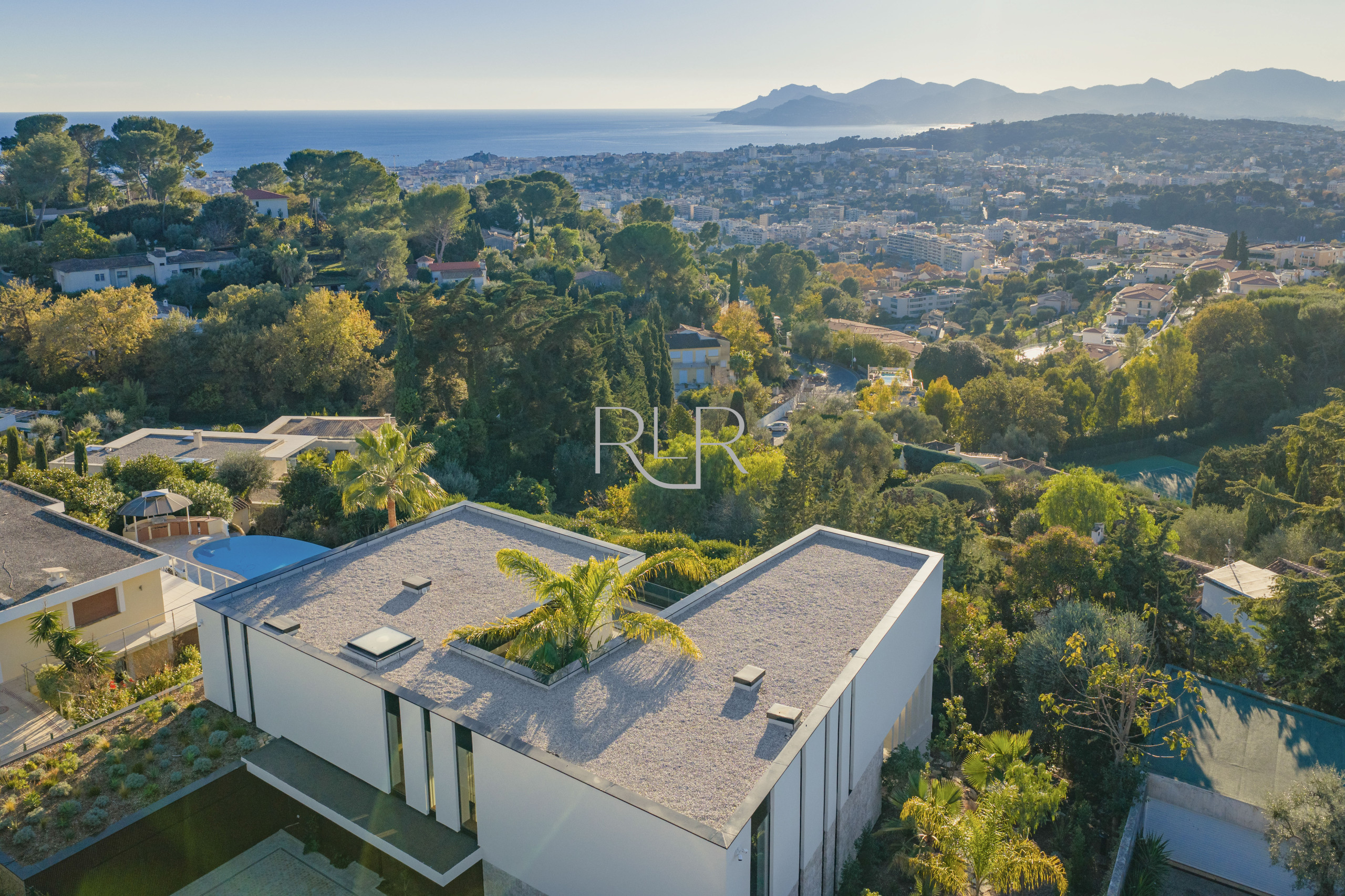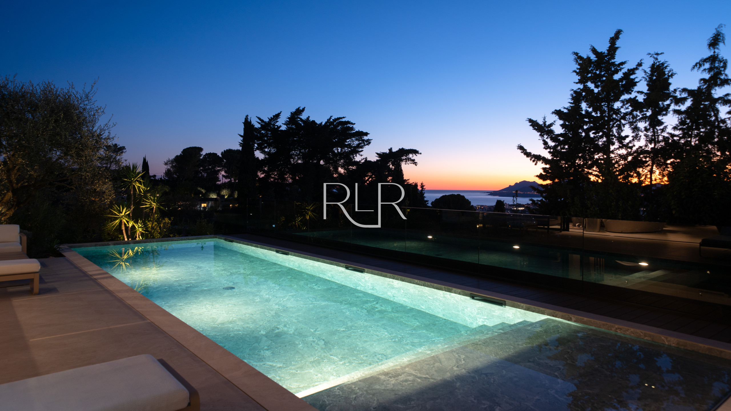 Perched in the hills of Cannes with beautiful sea views, this stunning villa of approximately 500sqm is set across three levels and offers generous, light filled interiors designed for comfort and relaxation.