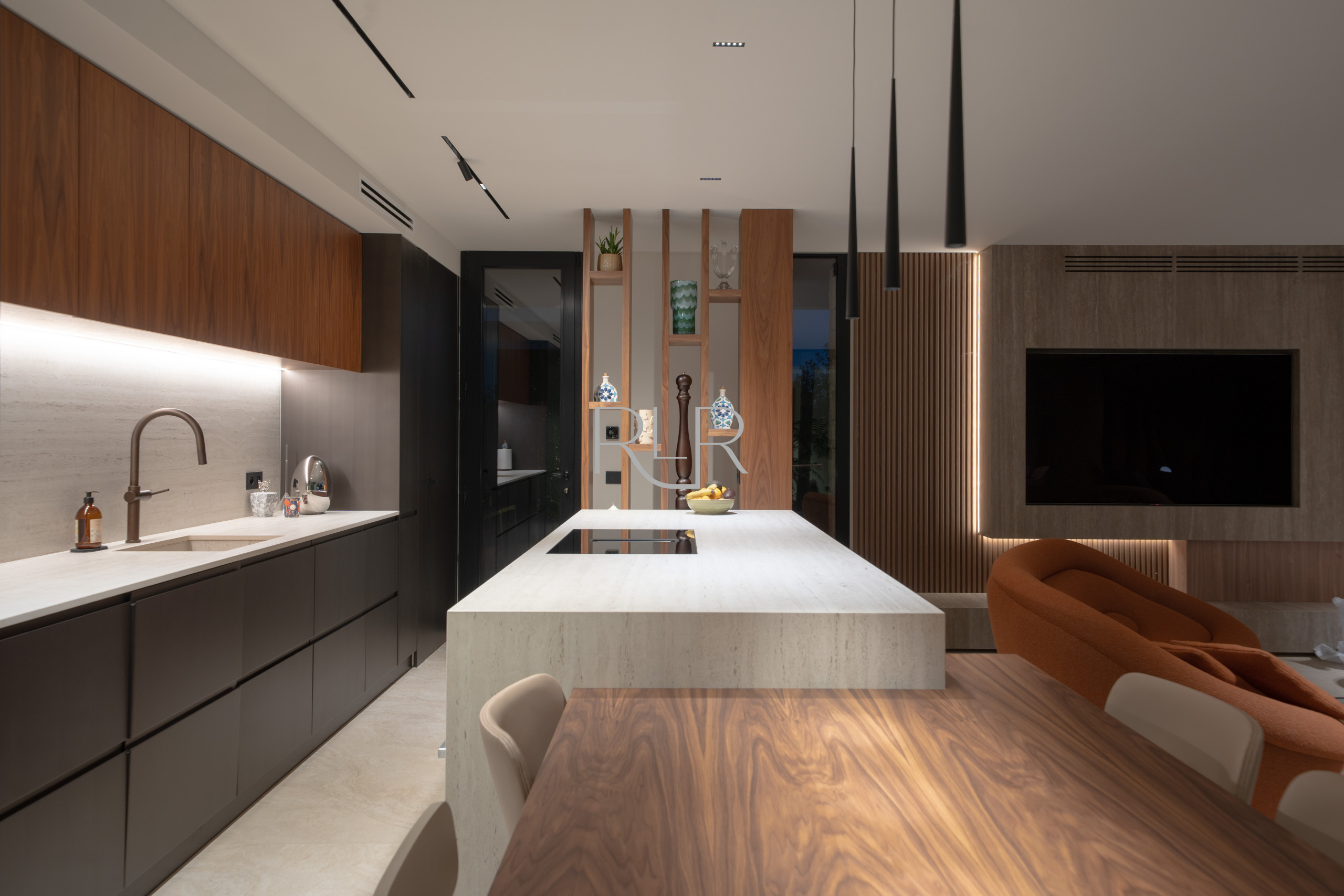 The main living spaces include an elegant living room with dining area and a modern, fully equipped open-plan kitchen, perfect for entertaining and enjoying time together.