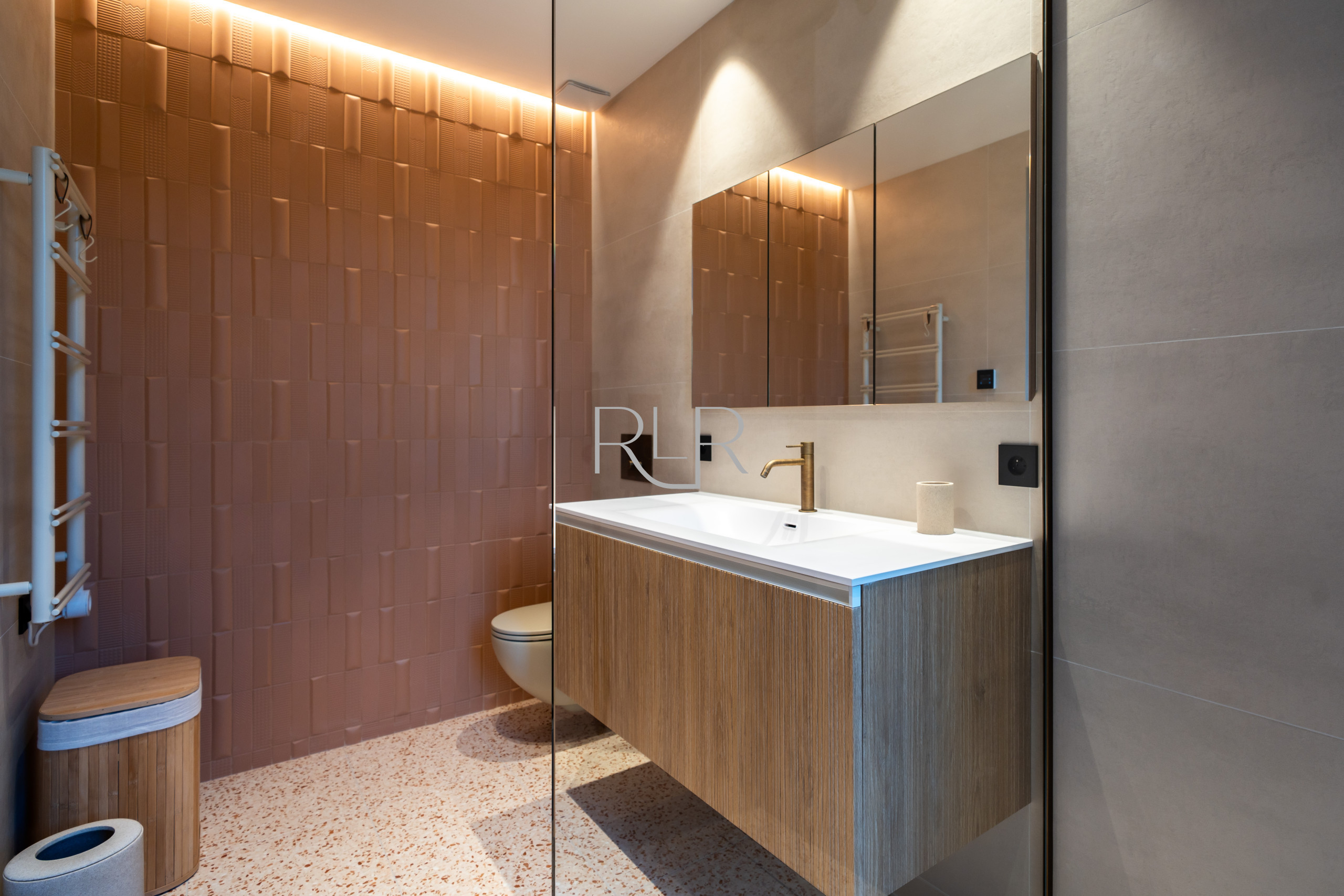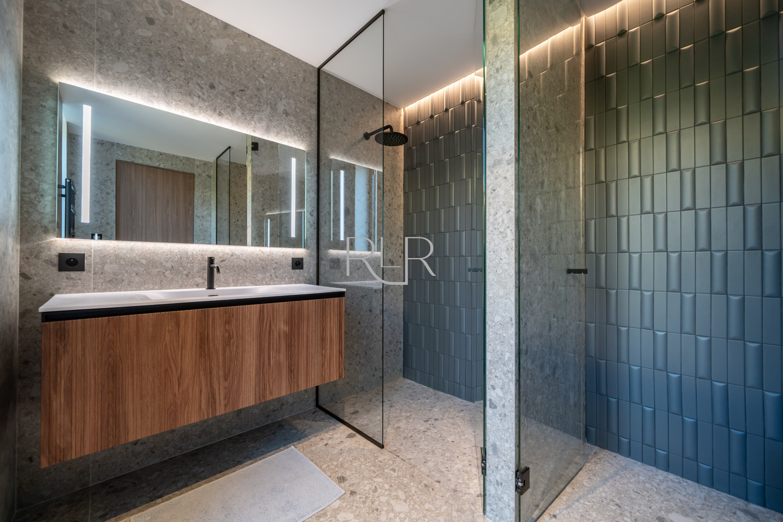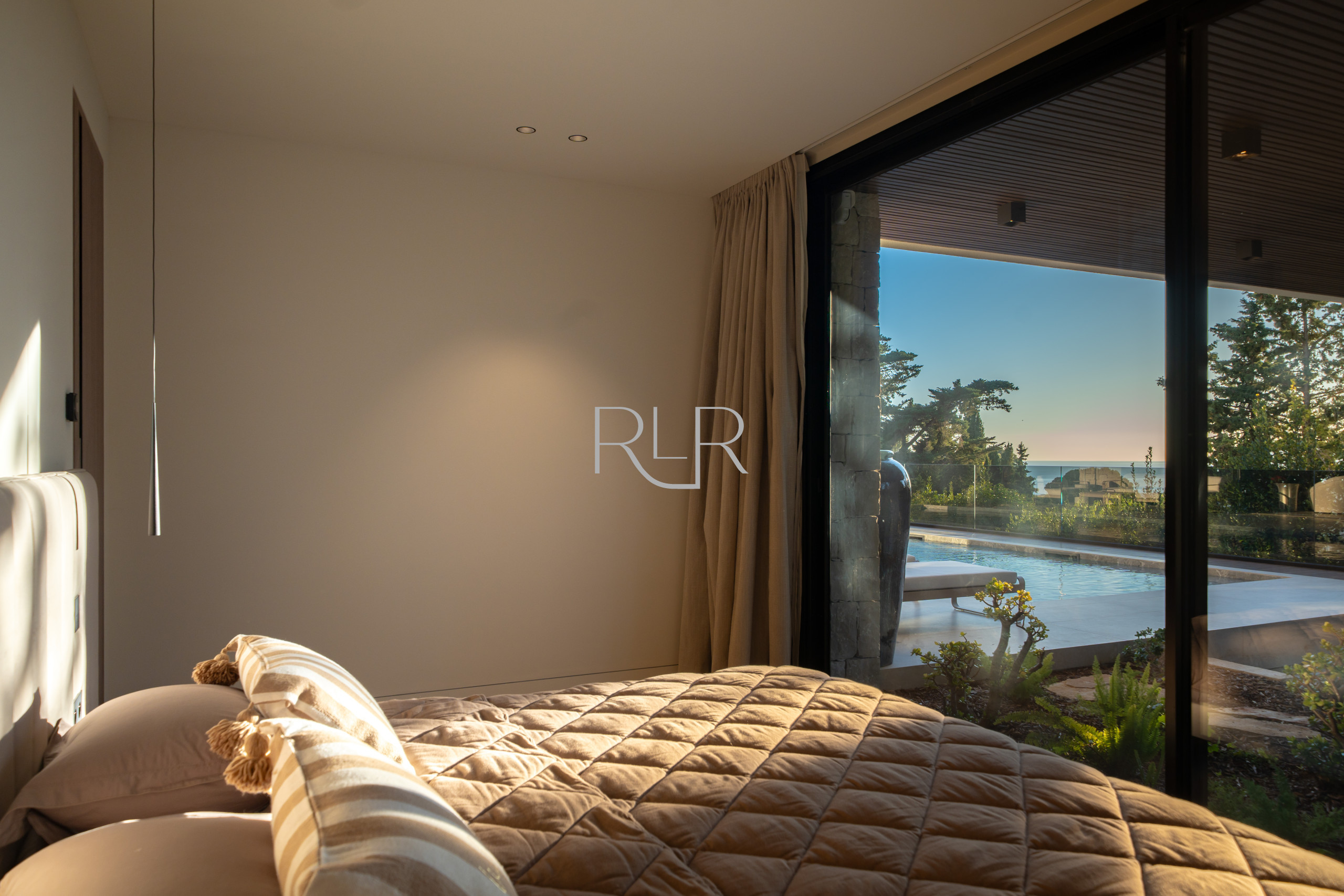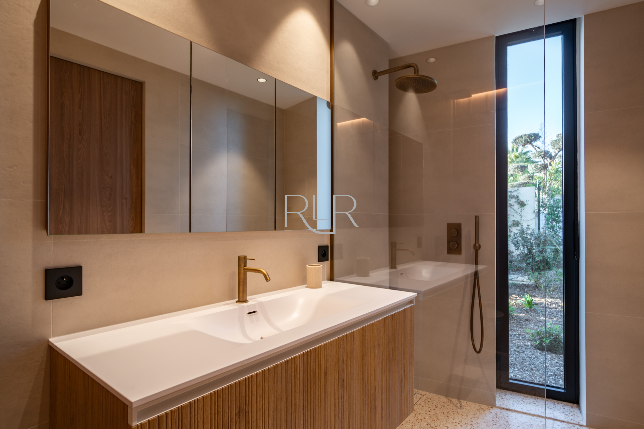 - Bedroom 1 : Master bedroom (bed 160cms)TV with an ensuite bathroom, separate shower, double sink, WC. Access to the swimming pool and sea view.