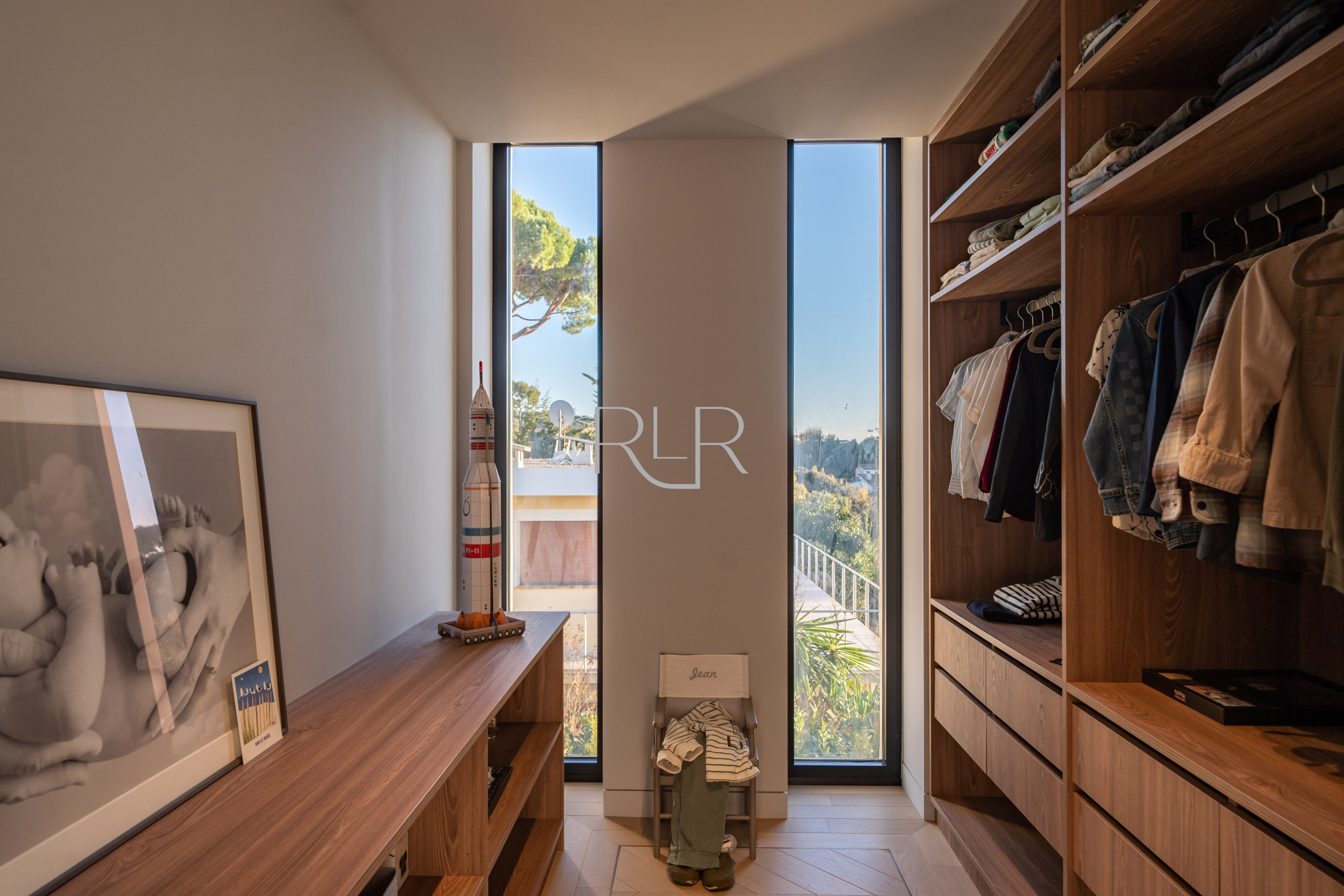 This gorgeous home of 300m2, located in Cannes in a calm residential neighborhood offers exceptional sea views from the majority of the rooms of the home and gardens.