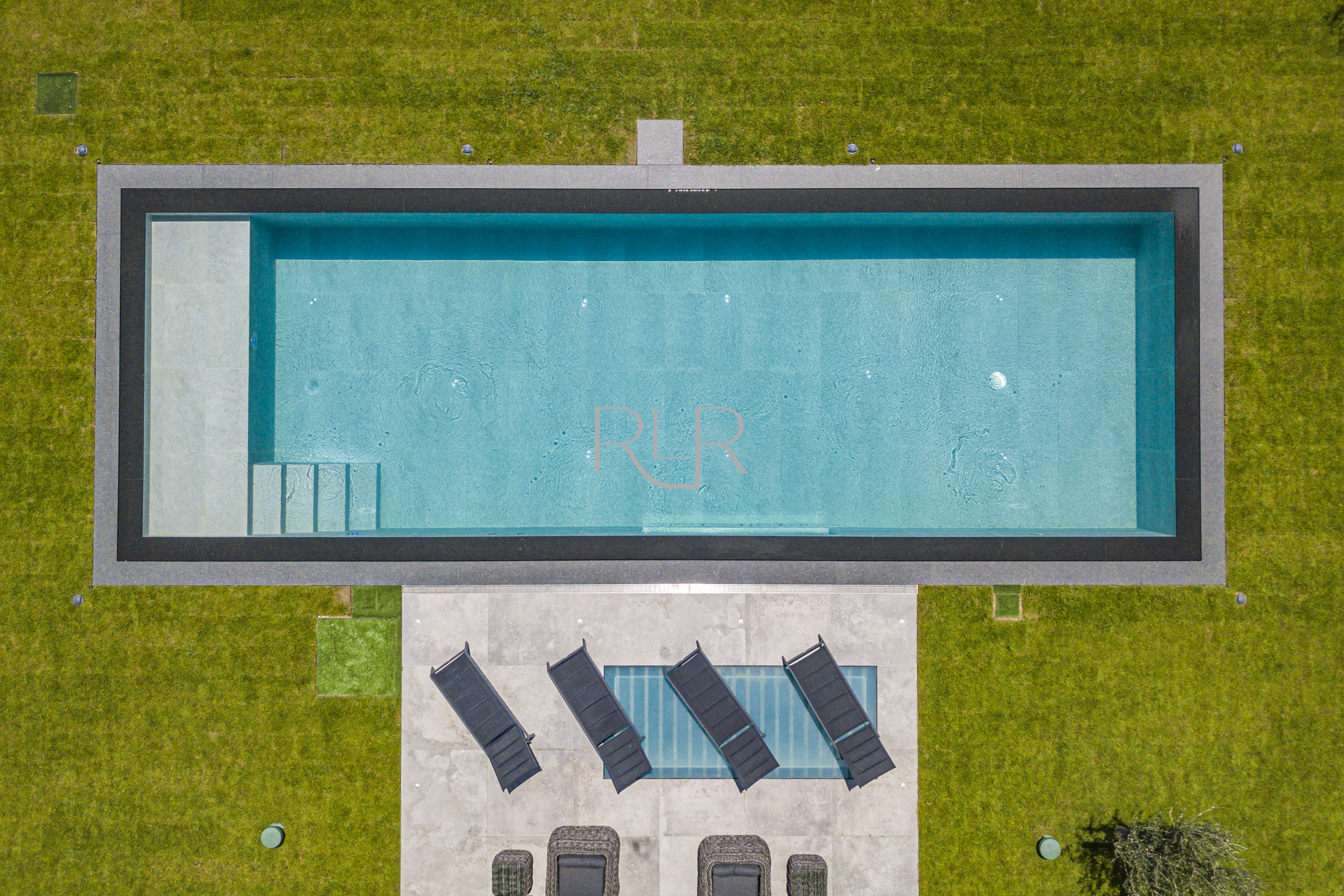 The outdoors offer terraces with dining and lounge areas and a swimming pool