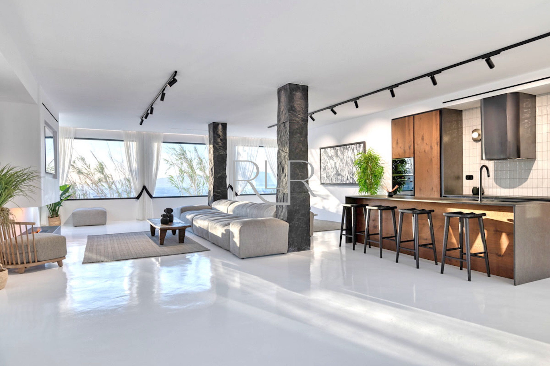 This refined seafront villa in Aleomandra offers unobstructed sunset and sea views, modern design, and high-end amenities. Bright, airy interiors blend natural materials with contemporary décor, opening seamlessly to spacious outdoor areas. Guests enjoy lavender-scented gardens, a poolside pavilion, sun terraces, and direct beach access. Surrounded by lush plants and olive trees, the villa provides privacy, comfort, and a welcoming island atmosphere.