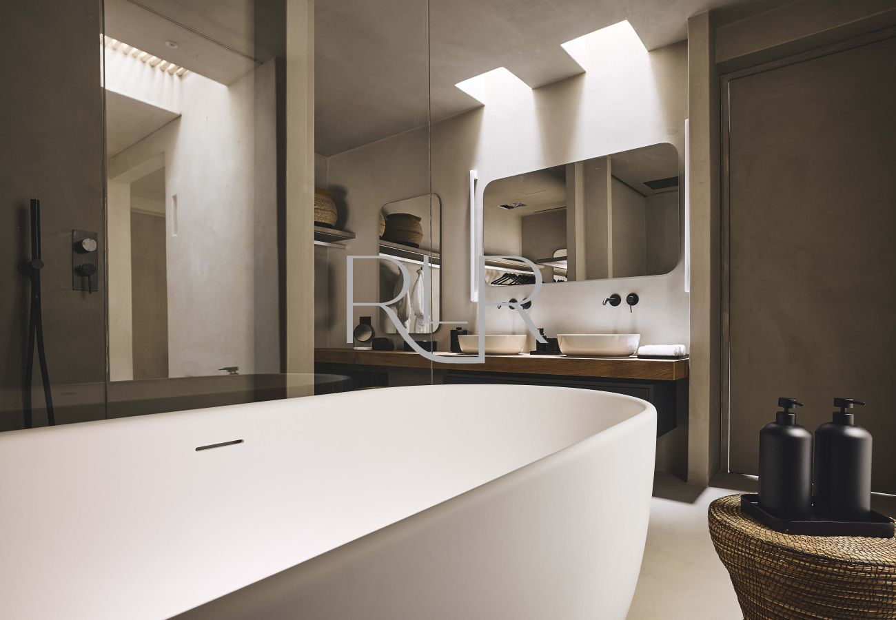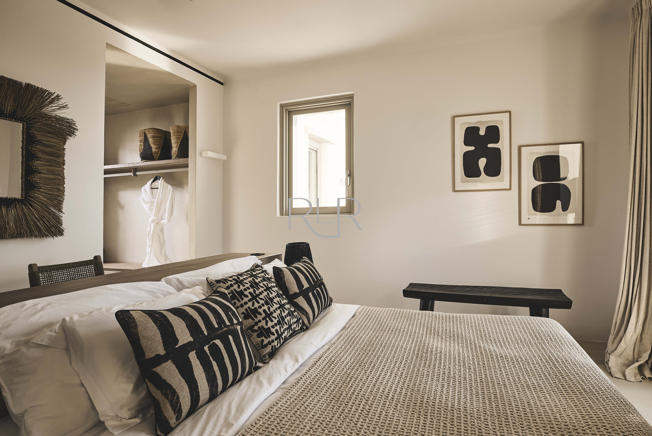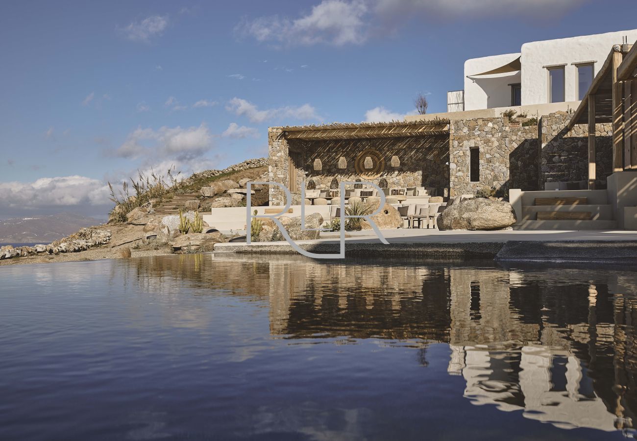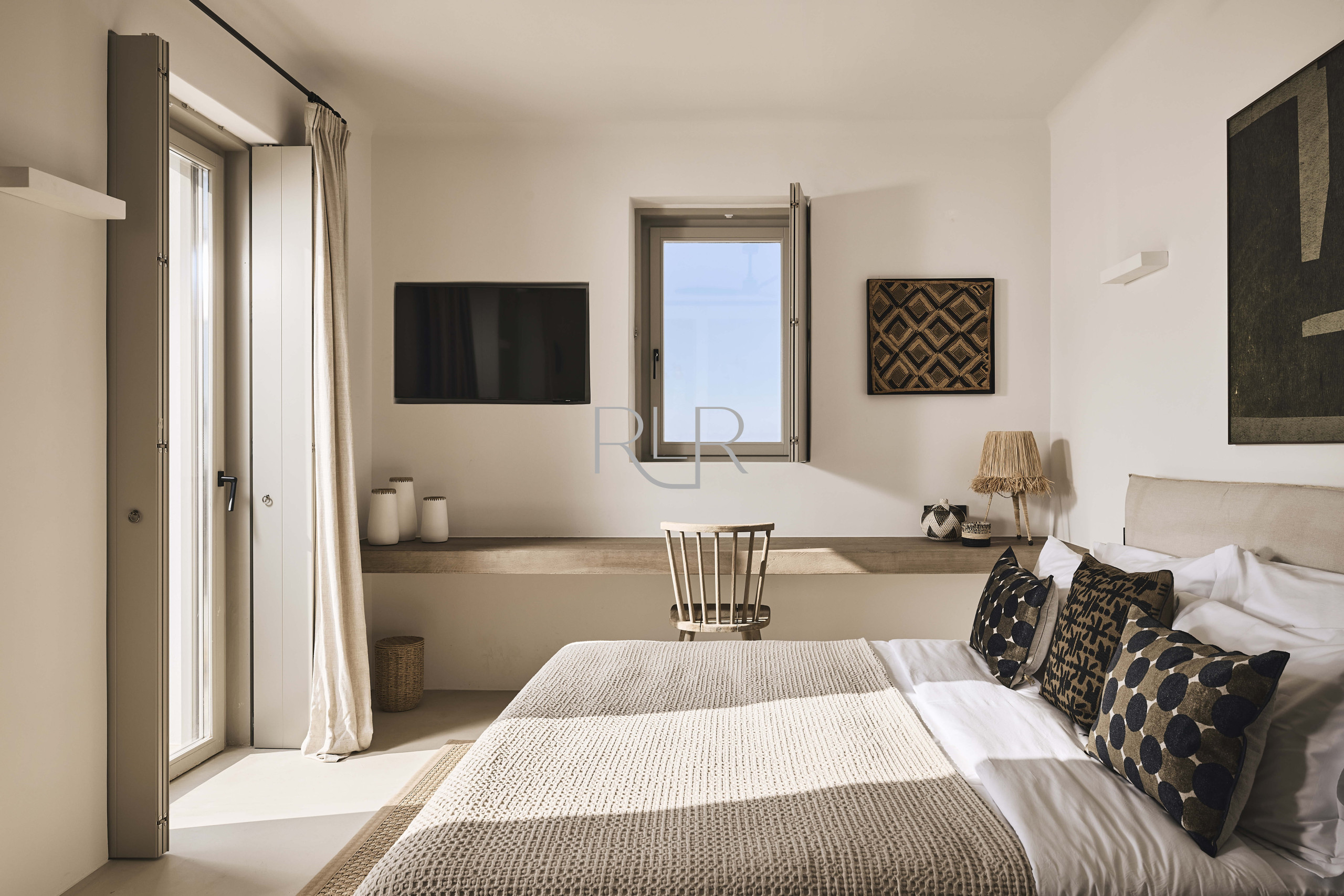 This villa is the perfect holiday destination for large families or groups of friends, accommodating between 10 to 14 guests. The main villa, a 5-bedroom en-suite residence, masterfully combines traditional Cycladic architecture with modern luxury, offering both privacy and comfort. Located just a 15-minute drive (5.5 km) from Mykonos Town, the villa offers unparalleled views of the Aegean Sea, Mykonos Town, the Old and New Ports, five Cycladic islands, and unforgettable sunsets.