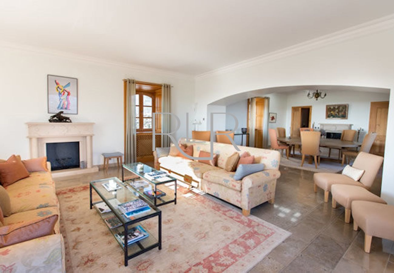 The 1000 sqm main property, entirely serviced by an elevator, includes a spacious double living room, a majestic dining