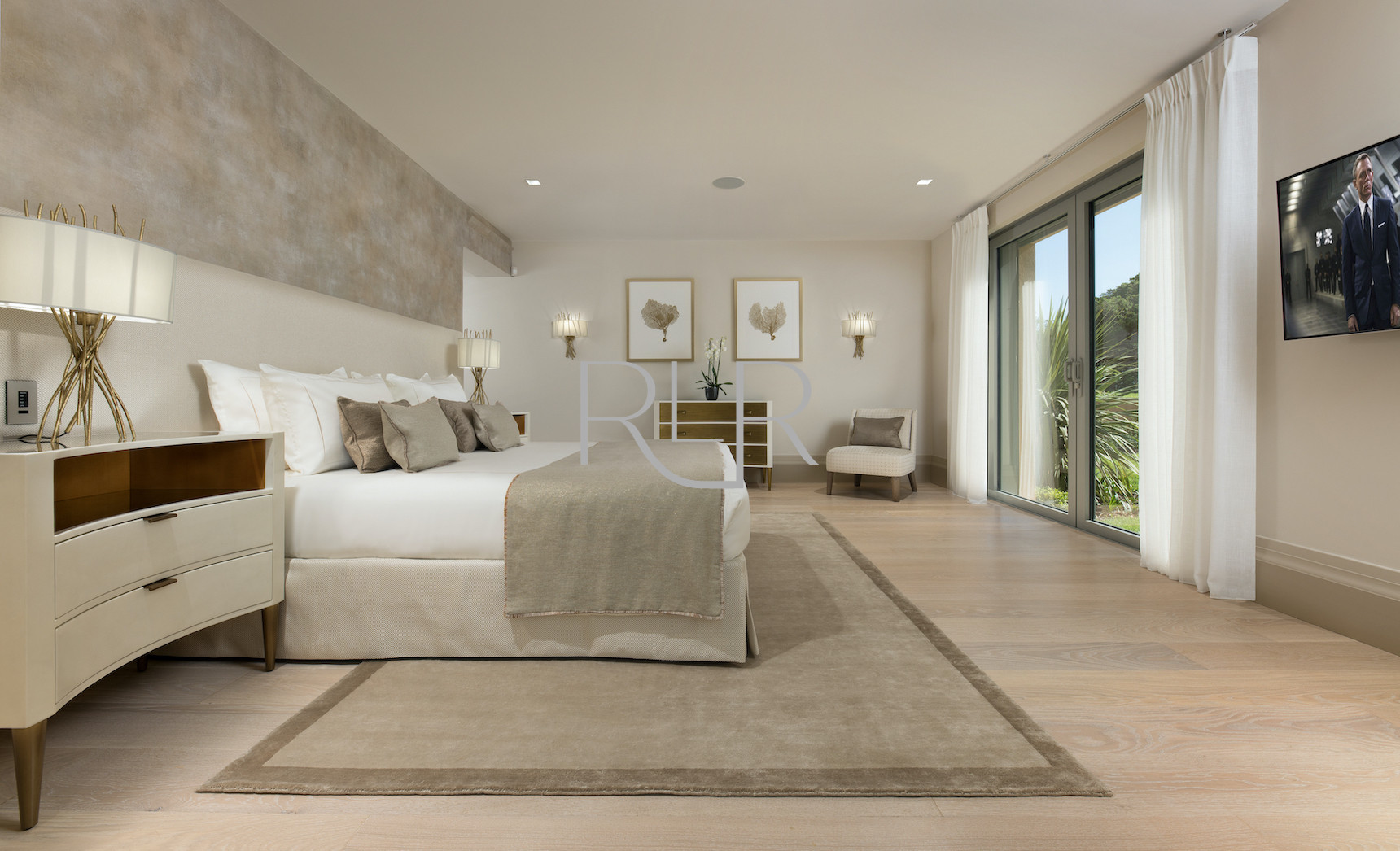 The villa can accommodate up to 16 people in 8 bedrooms en suite, and has a separate apartment for the staff. The outdoors offer numerous dining and lounge areas as well as 8000sqm of gardens with a 20m heated swimming pool.